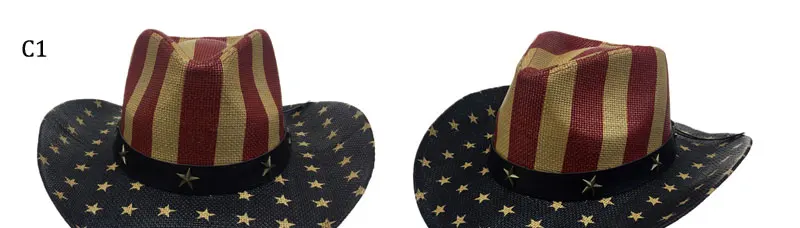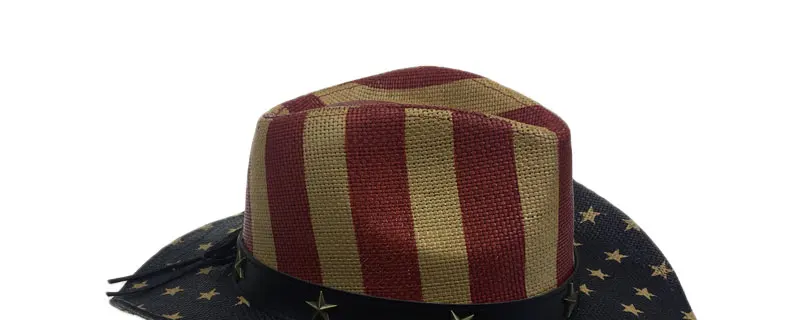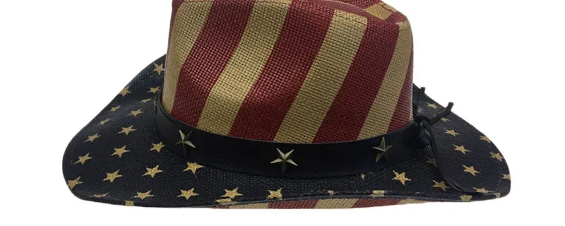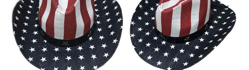 Special American Flag Star Cowboy Hat For Men Summer Beach CAP Wide Brim Straw Cowboy Western Word Cowgirl Sun Visor Hat YY18046