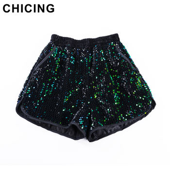 SPEERISE Womens Shiny Metallic Black Shorts High Waisted Dance Fashion Fitness Nylon Lycra Spandex Skinny Elastic Ladies Shorts