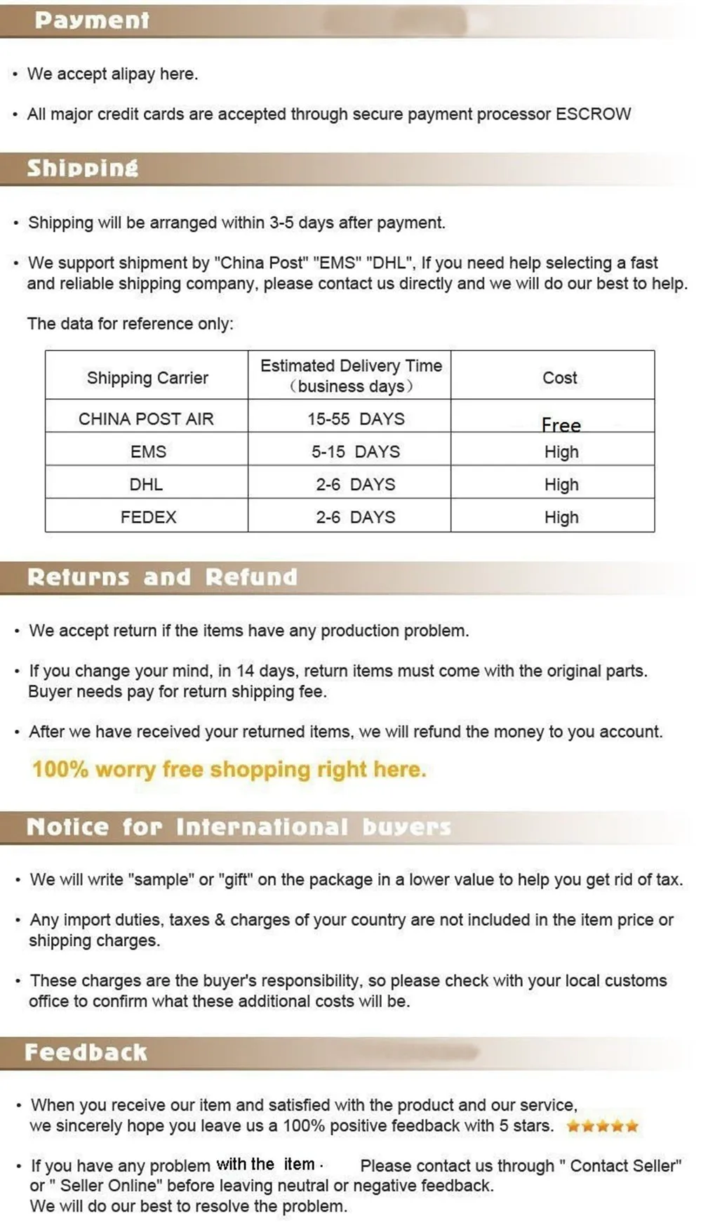 *You can submit refund requests within 15 days after the guaranteed period for delivery (45 days) has expired. You can do it by sending a message on Contact Us page