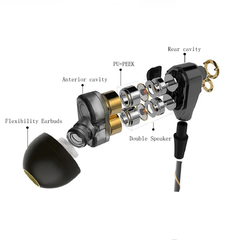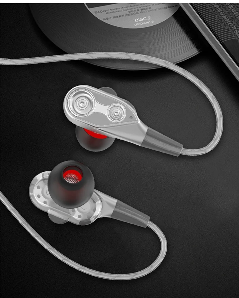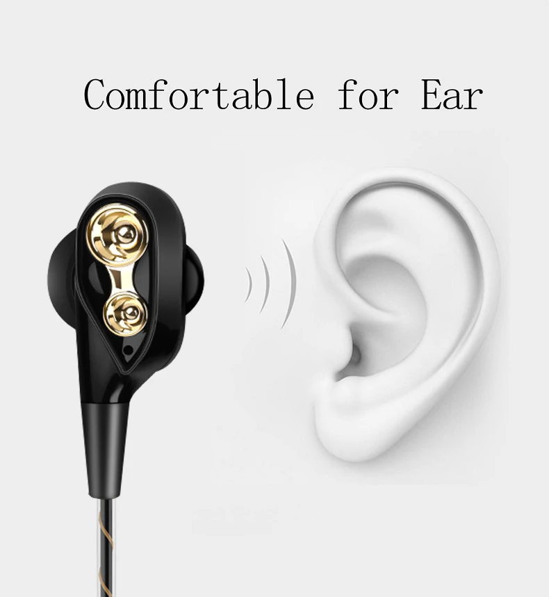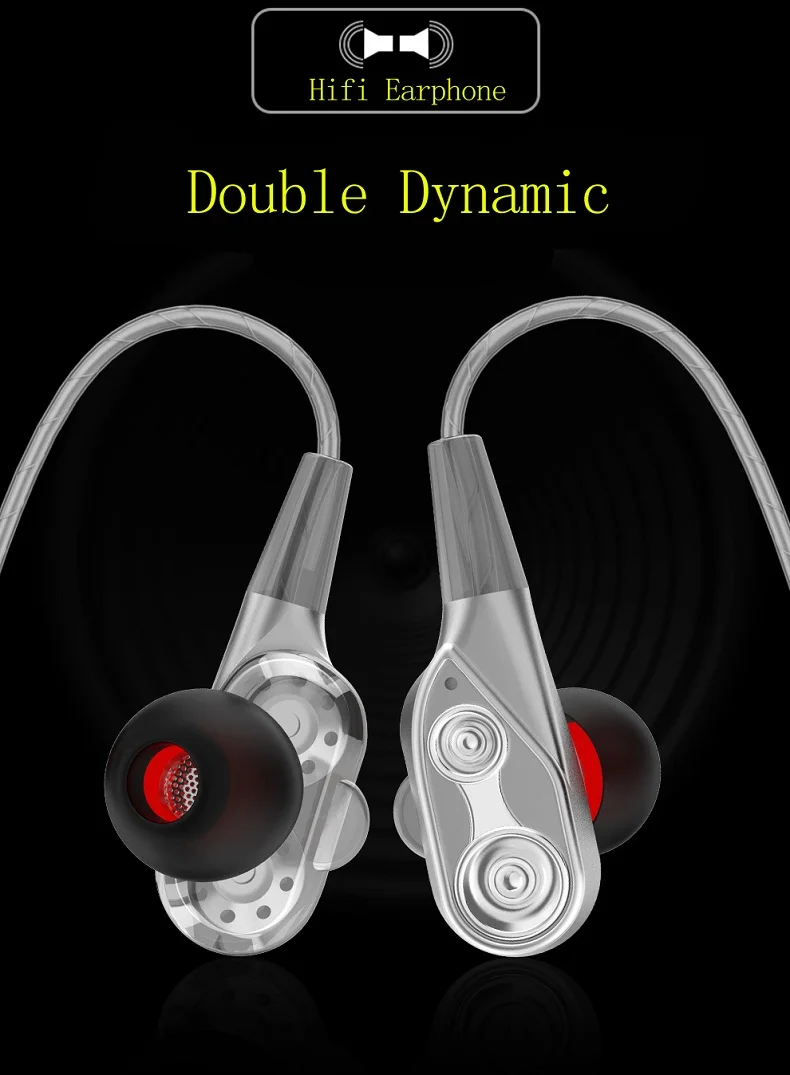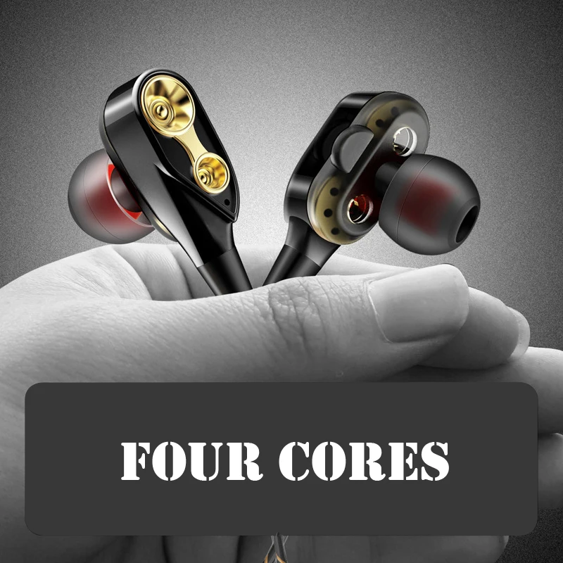 Sport In-Ear Earphone for phone Dual Driver Earphones 4 Speakers Stereo Bass Running Gaming Headset Earbuds With Mic Handsfree