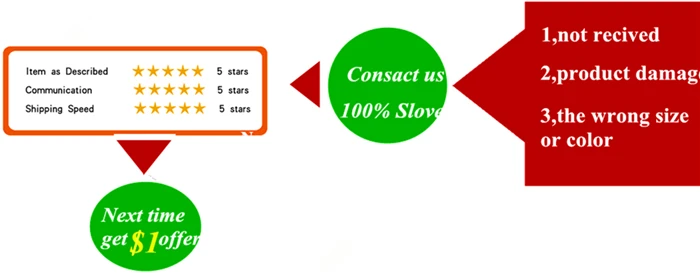 1.If you are not satisfied with the item(not recived, product damage,the wrong size or color),pls don’t hesitate to contact us,