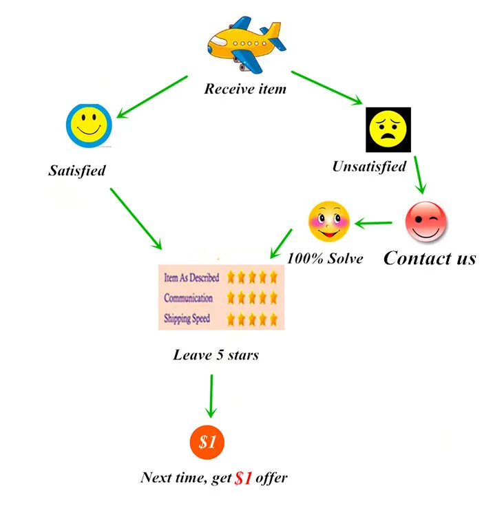 2.If you are satisfied with item,hope you give us all 5-stars positive feedback, next time it can get $1 offer.