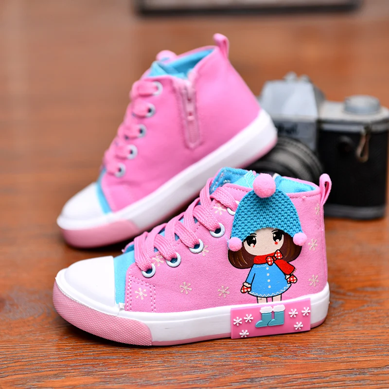 Spring and autumn girls canvas shoes girls cute casual shoes breathable high shoes new shoes