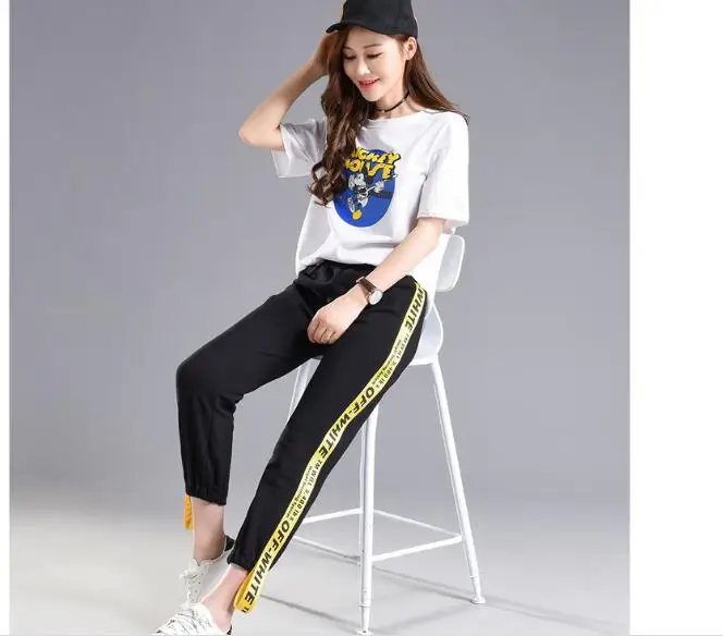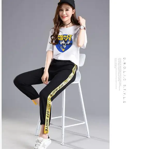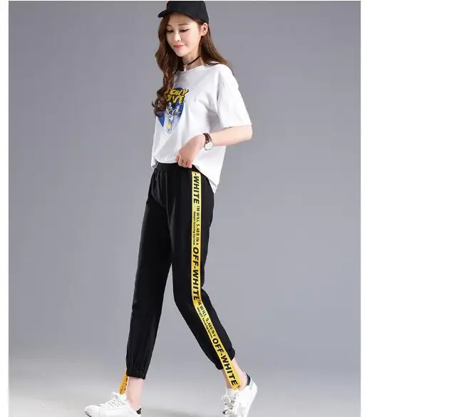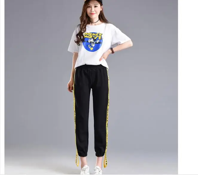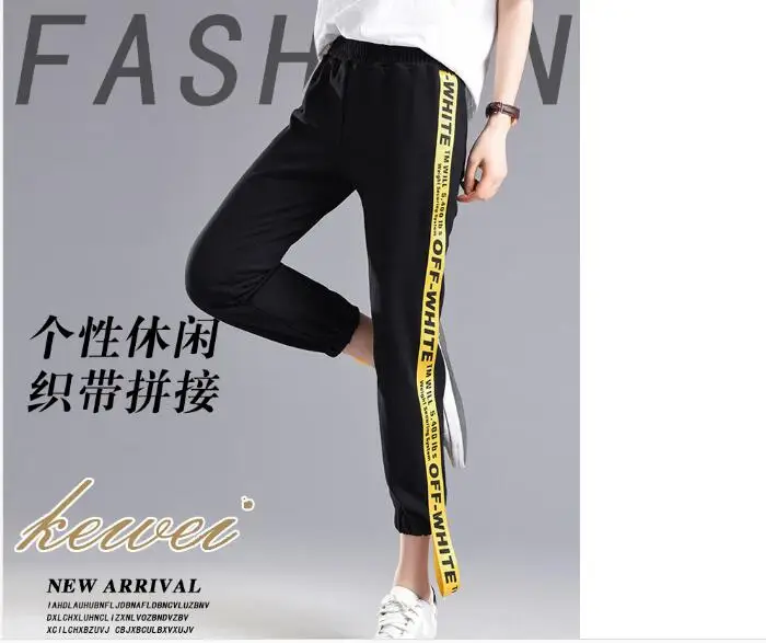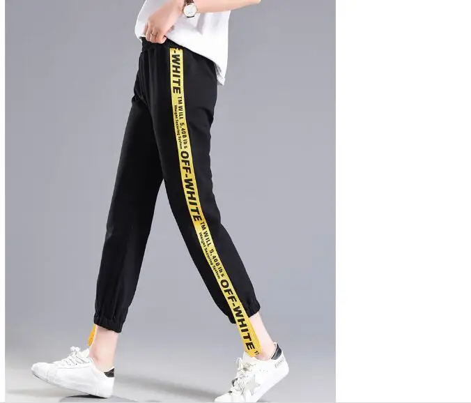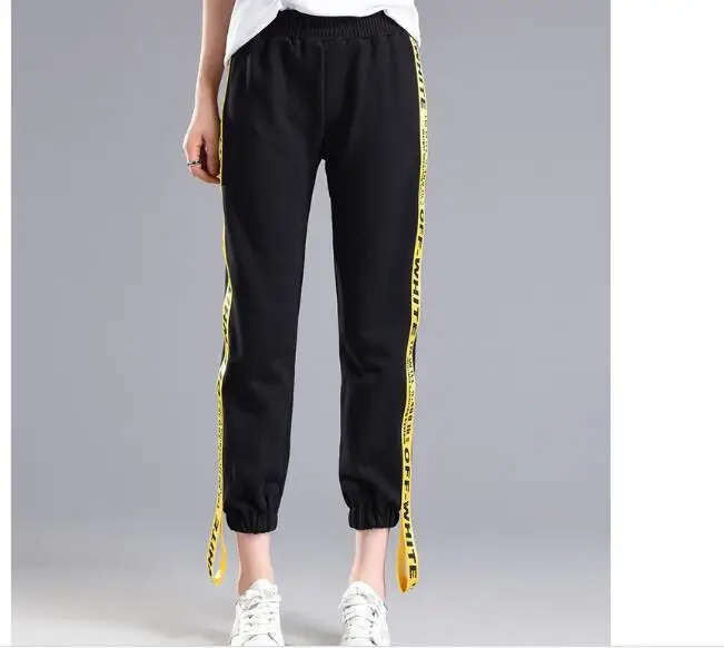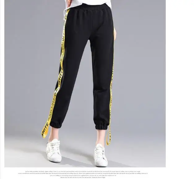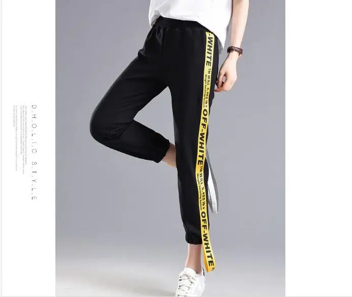 Spring Autumn Fall Letter Side-stripe Pants Female M-2XL Loose Elastic Waist Women Pants Summer Hip Hop Clothes Korean Trousers Y069