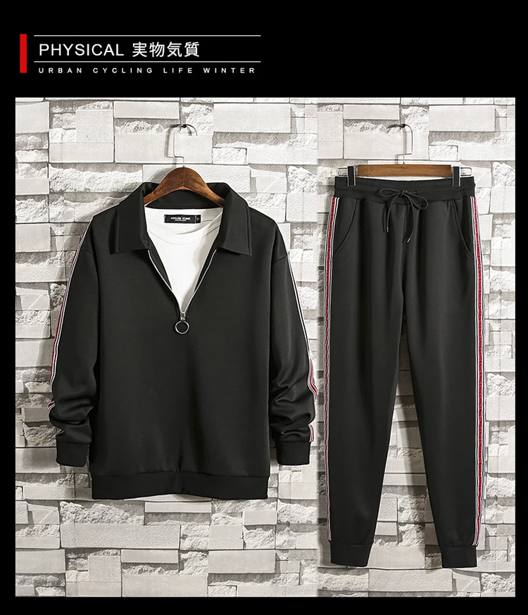 Spring Autumn Fashion Brand Tracksuit Mans Sportswear Mens Sweatpants Men’s Sweatshirt Black Striped Pants Male Hoodies M-XXXL