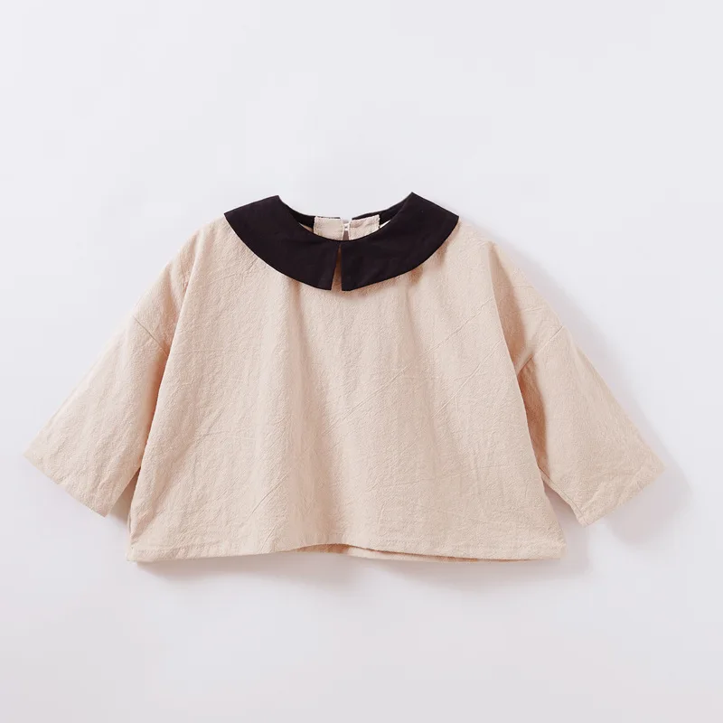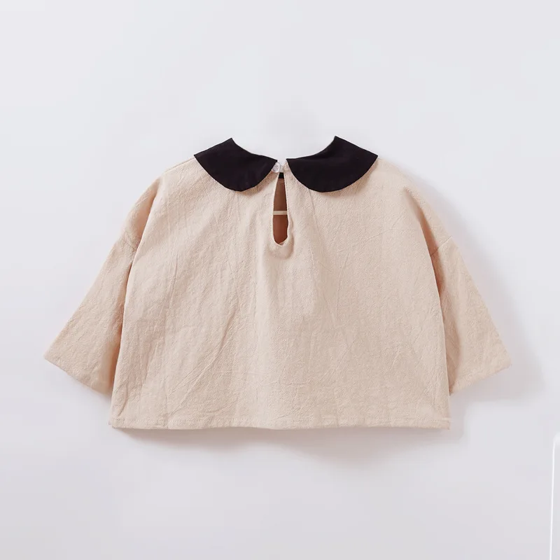 Spring autumn Korean style baby girls long sleeve cotton linen blouses children turn-down collar casual Bat shirt kids clothes