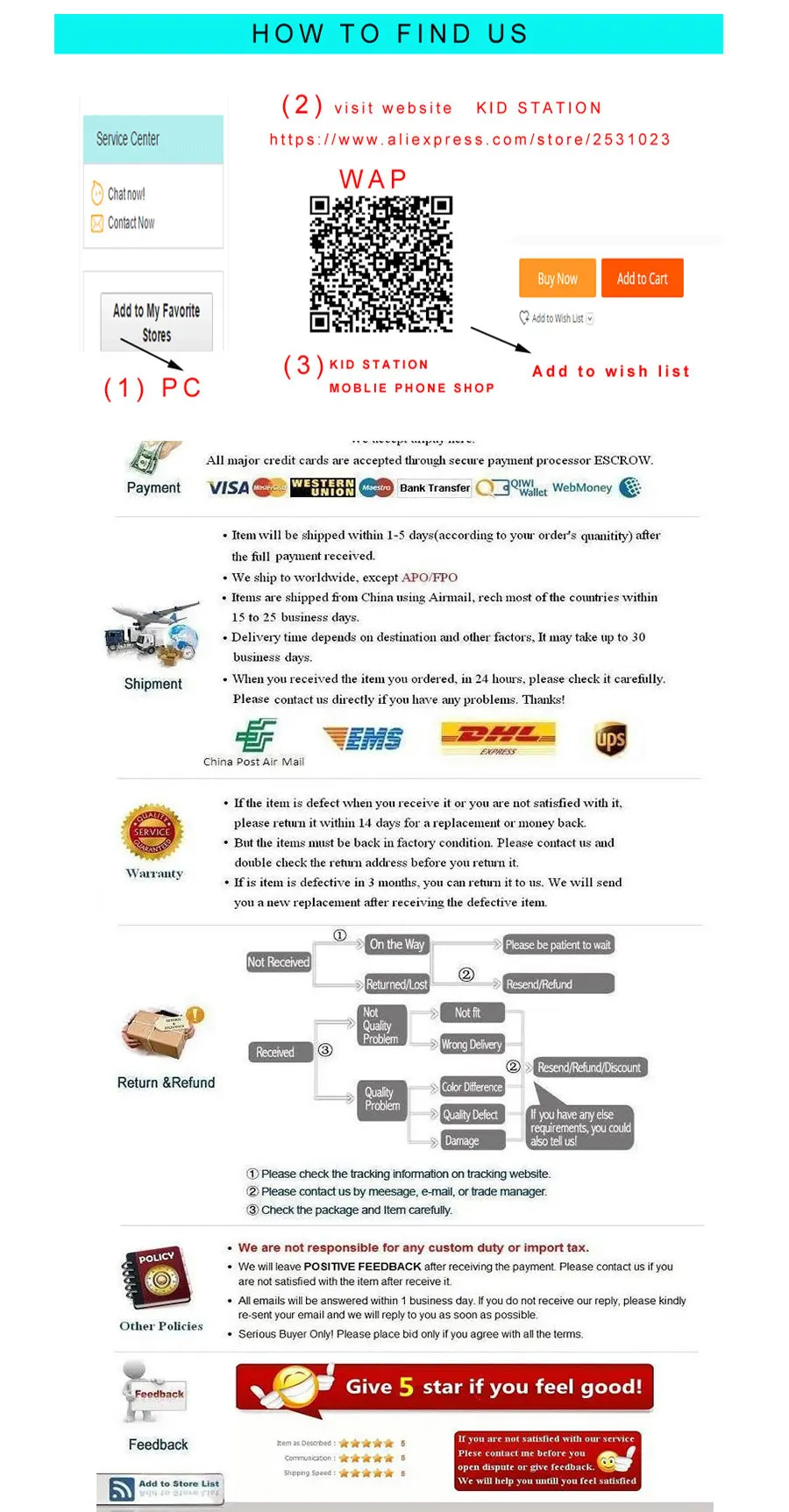 We are not responsible for any custom fees once the items have shipped. By purchasing our products, you consent that one or more packages may be shipped to you and may get custom fees when they arrive in your country.