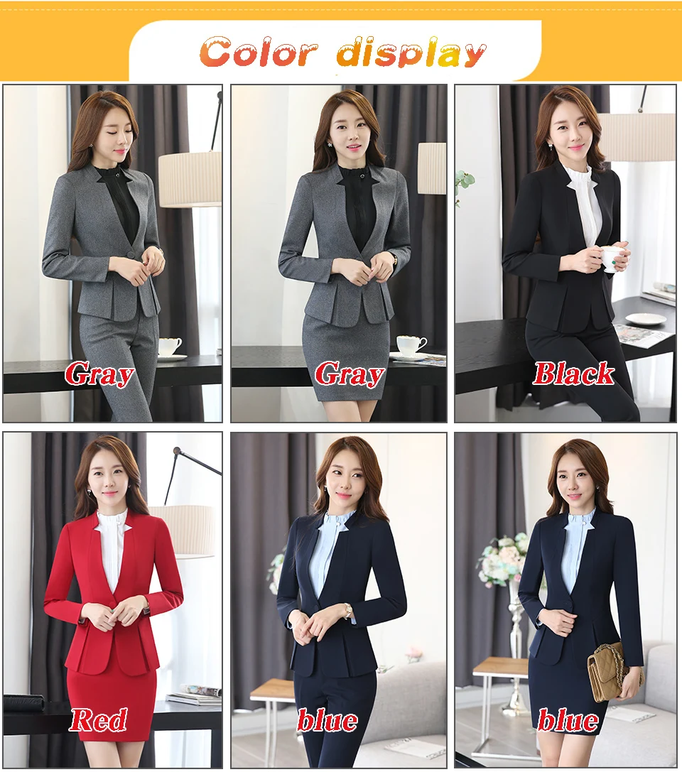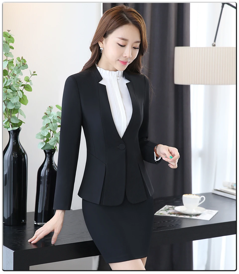 Spring Autumn Two pieces Suits Ladies Formal Skirt Suit Office Uniform Style Female Business Suit For Work Blue Women Blazer Set