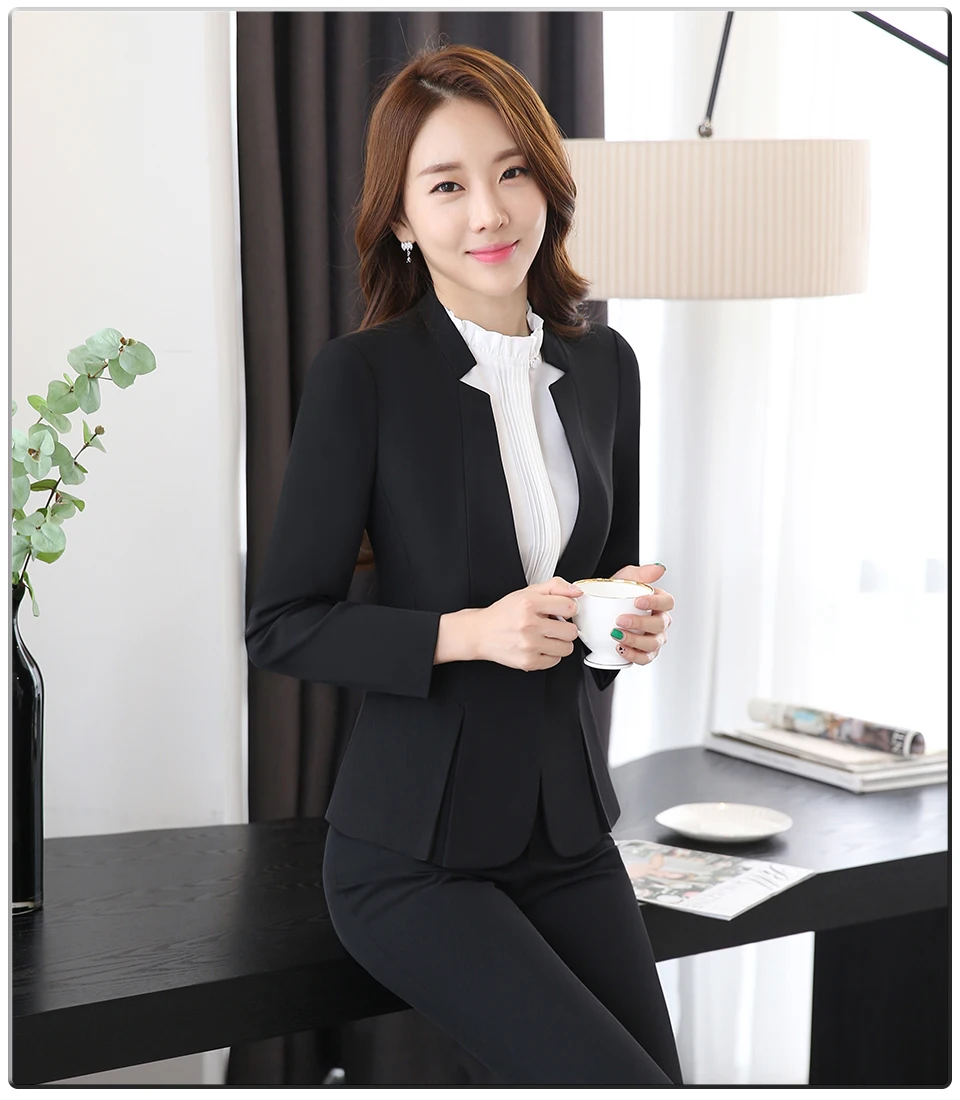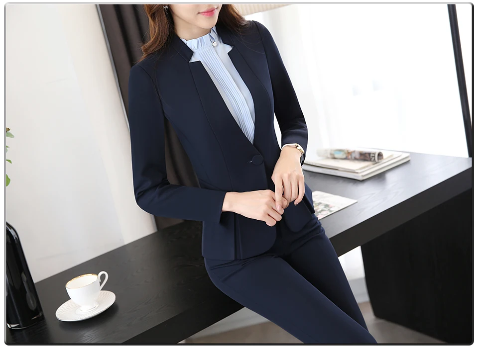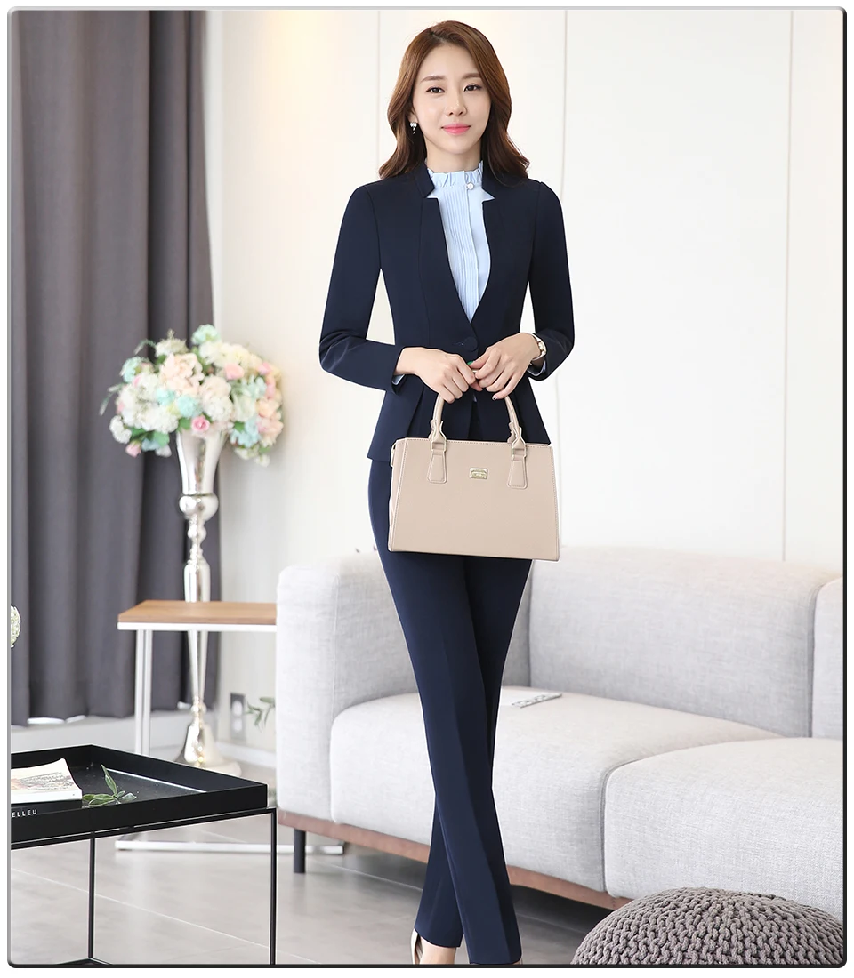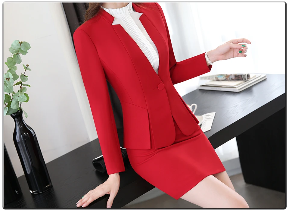 Spring Autumn Two pieces Suits Ladies Formal Skirt Suit Office Uniform Style Female Business Suit For Work Blue Women Blazer Set