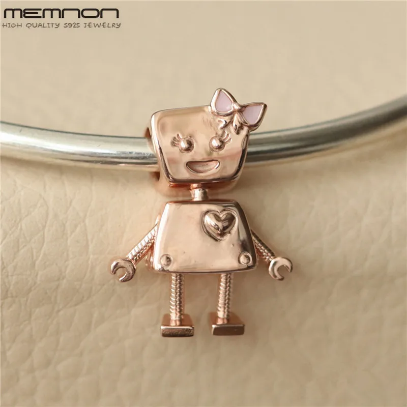 Detail Name: Spring New 925 Sterling Silver Robot Charm Pink Enamel Bead with rose Fit charm beads Bracelet DIY for Women Jewelry Accessories