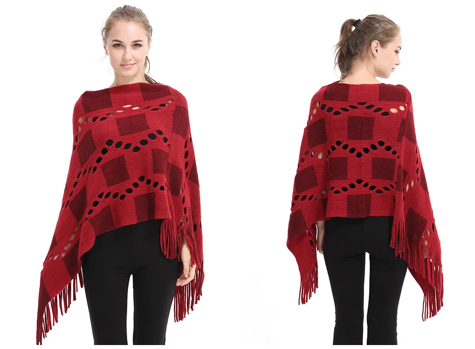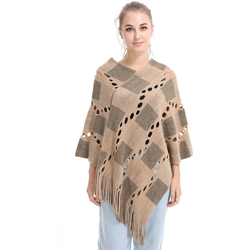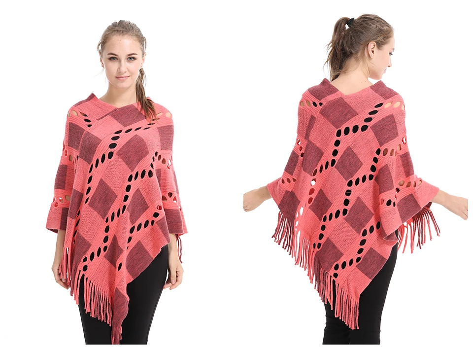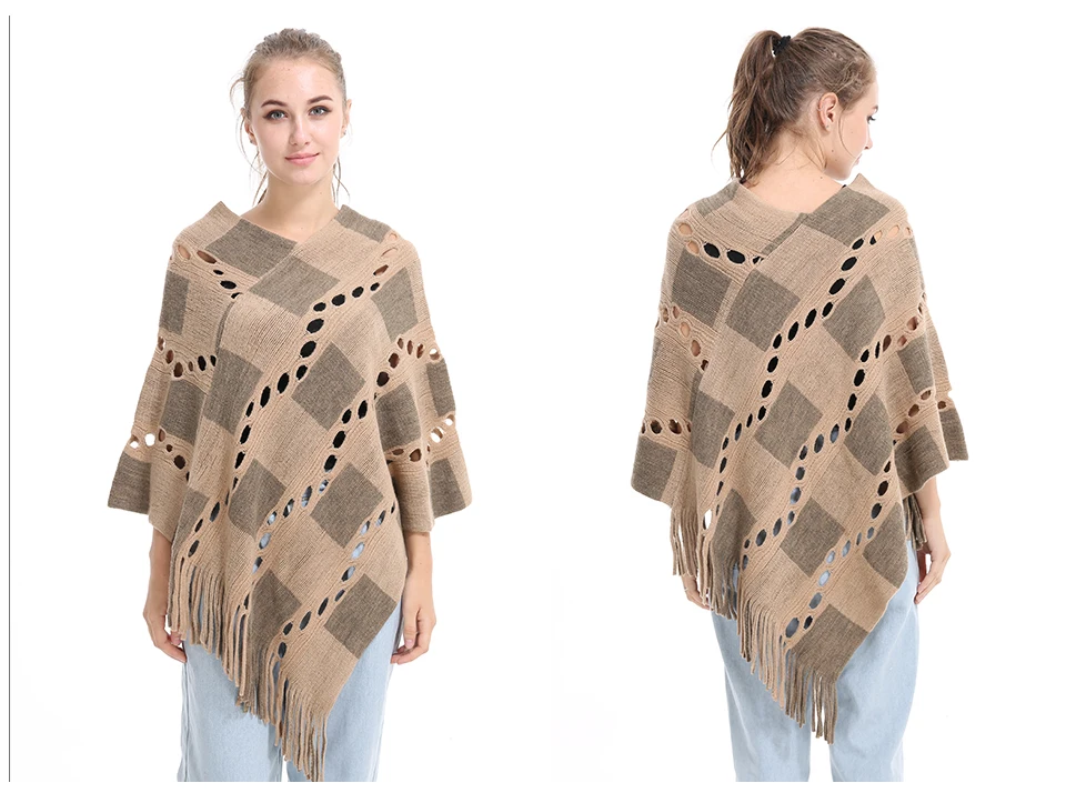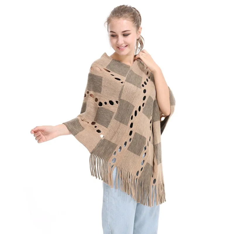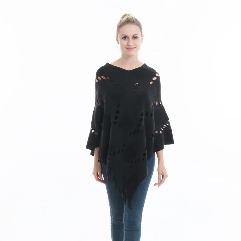 Spring Summer Women Hollow Out Sweater Knitted Tassel Poncho And Capes Ladies Long Size Cardigan Sweaters PH04