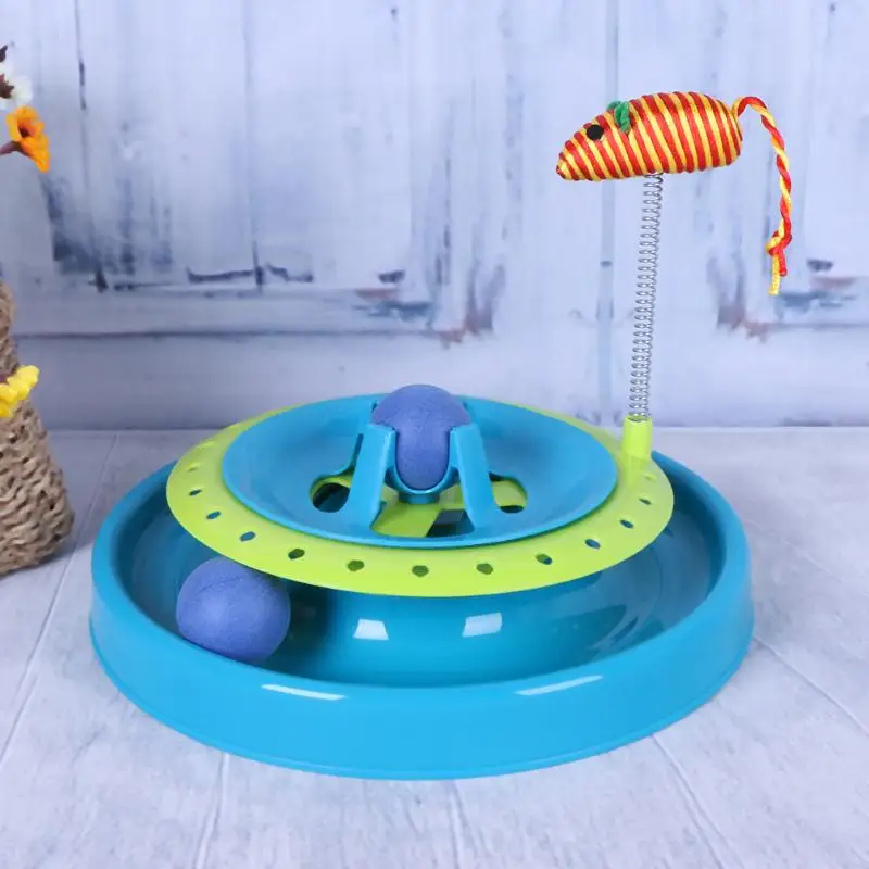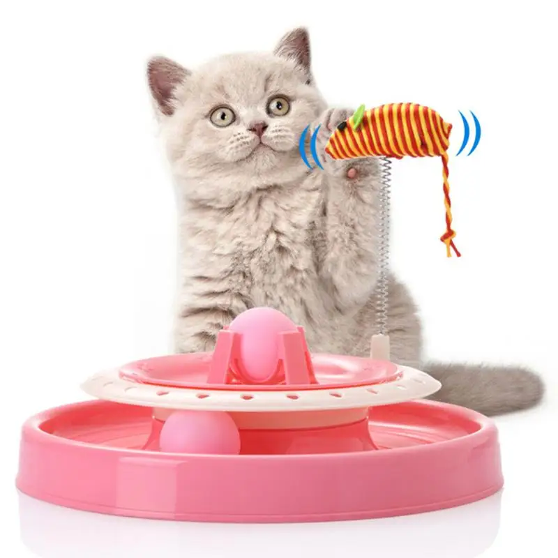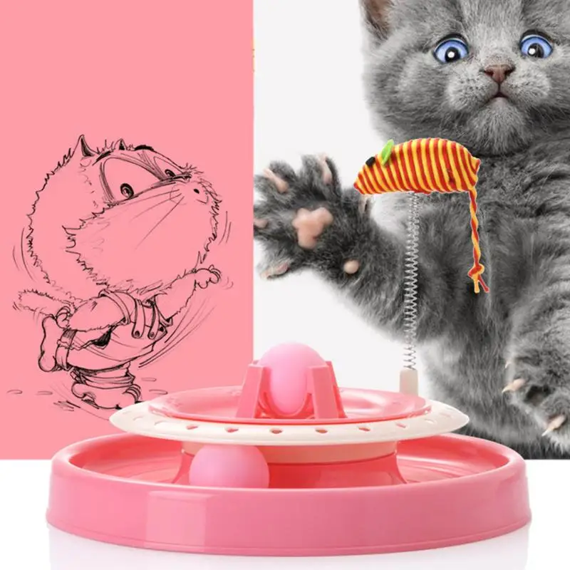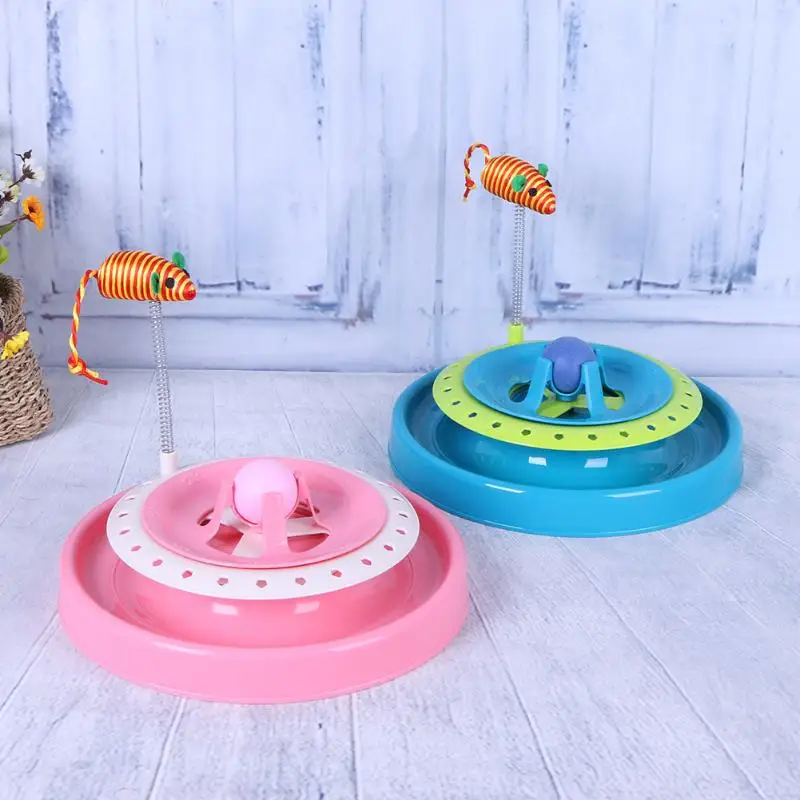 Spring Turntable Cat Training Toys Pet Toy Cat Crazy Ball Disk Interactive Amusement Plate Play Disc Mouse Cat Toys Cat Supplies