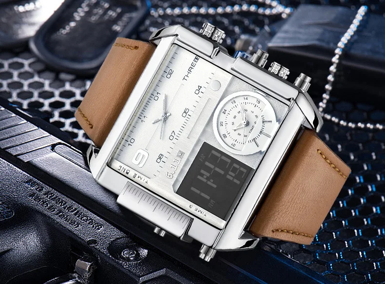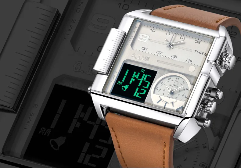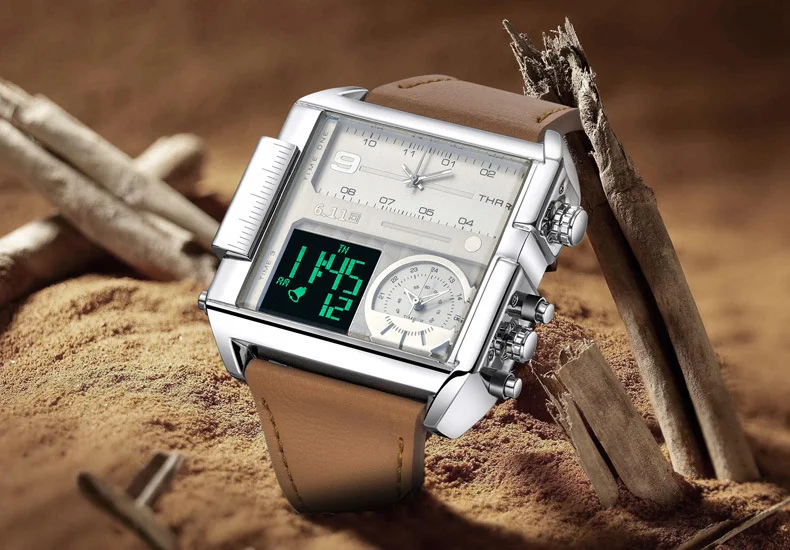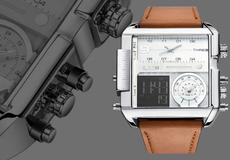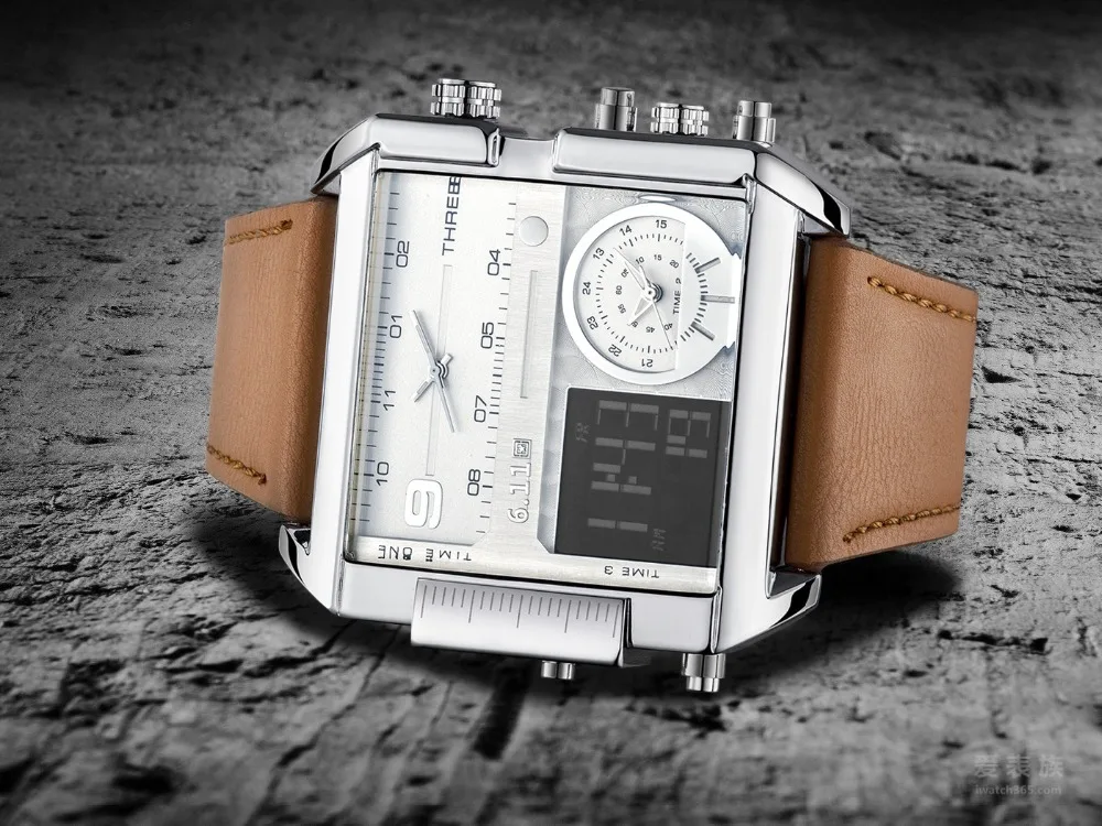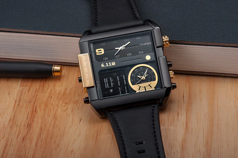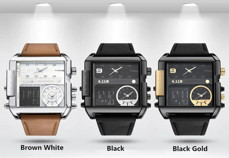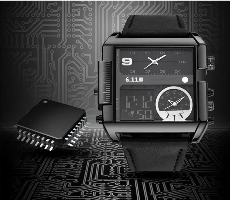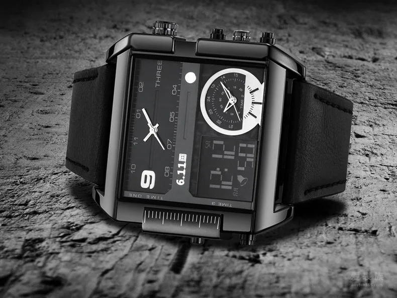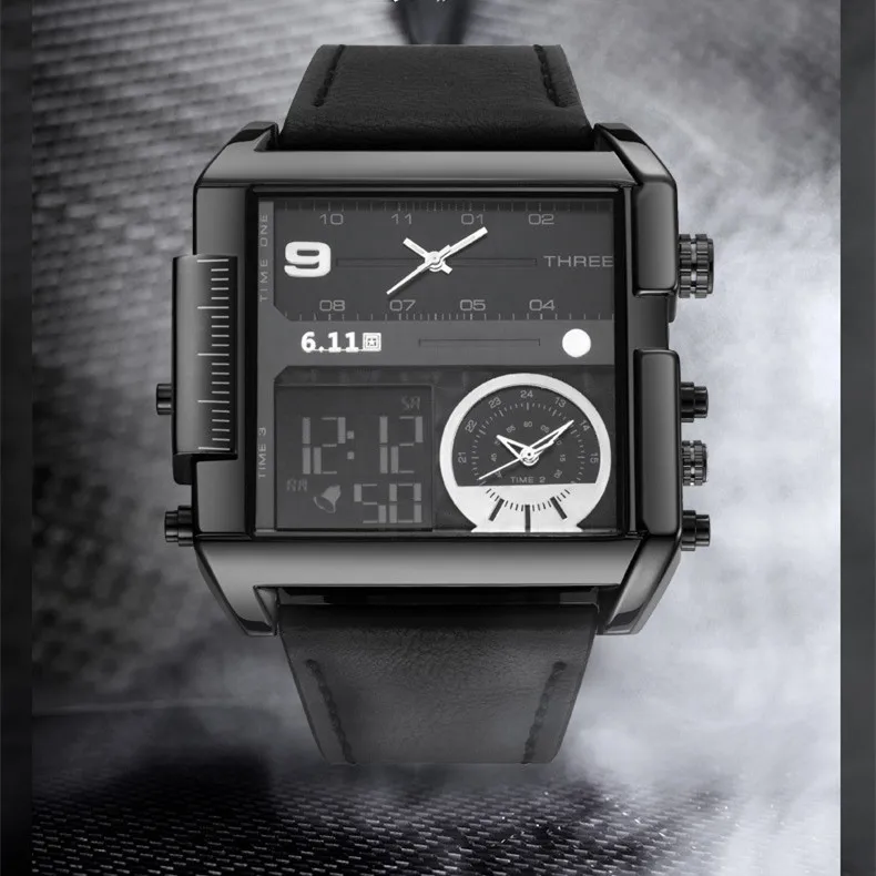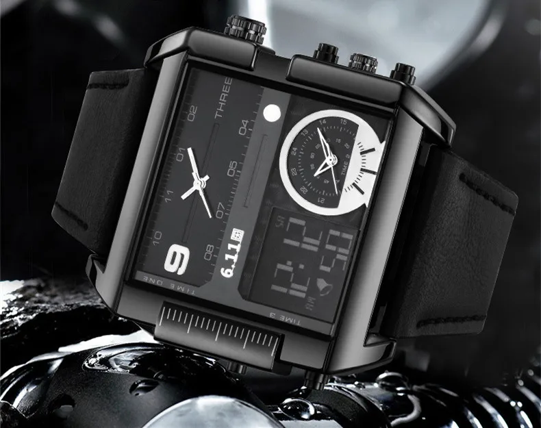 Square Watches Men Led Waterproof Multiple Time Zone Mens Watches Brand Luxury Relogio Masculino Montre Homme Sport Watch