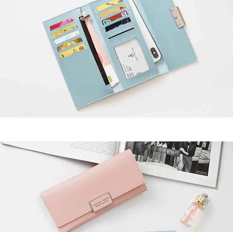 SRB Women Wallet Long purse female original leather Lady Cute Phone Bag Card Pocket Women Money clip long Clutch passport cover