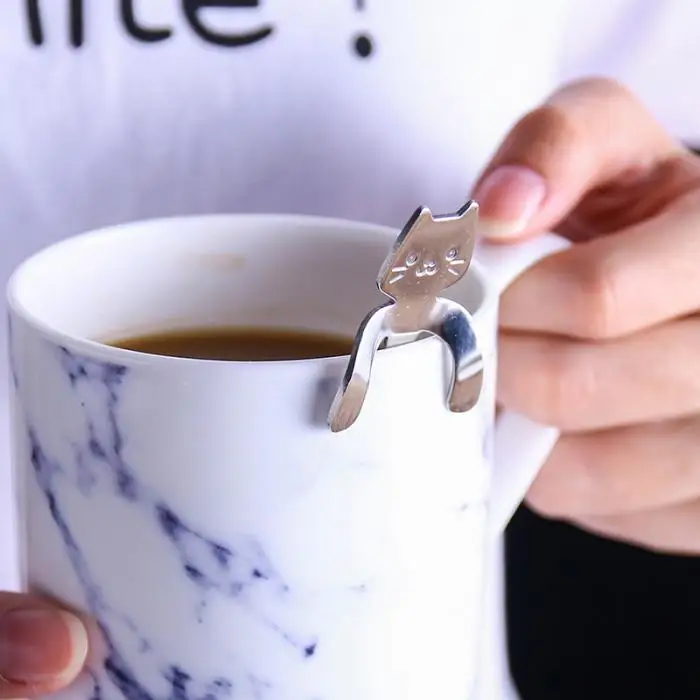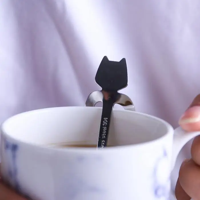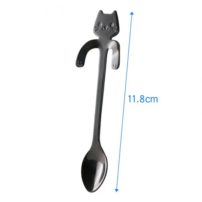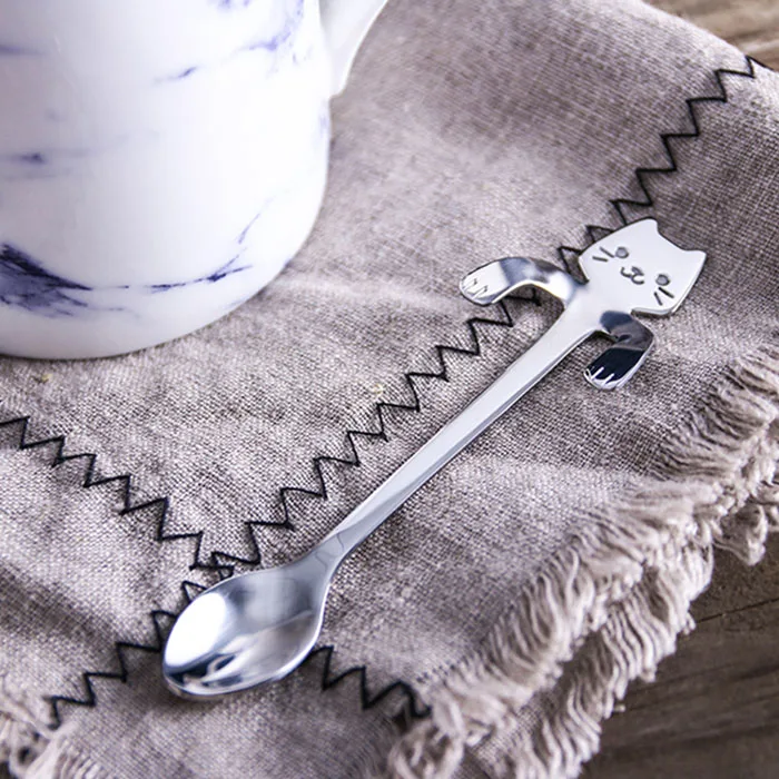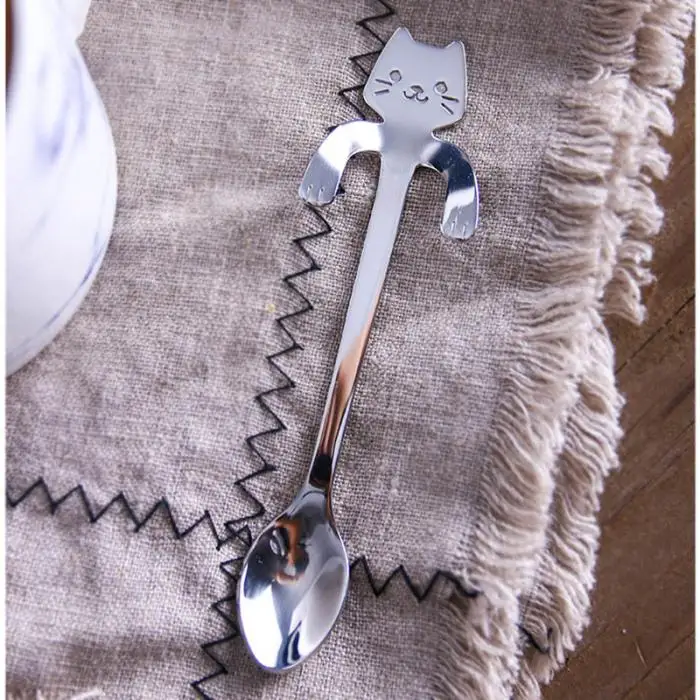 Stainless Steel Cute Cat Shape Coffee Tea Spoons Stirring Spoon Hangings Style LBShipping