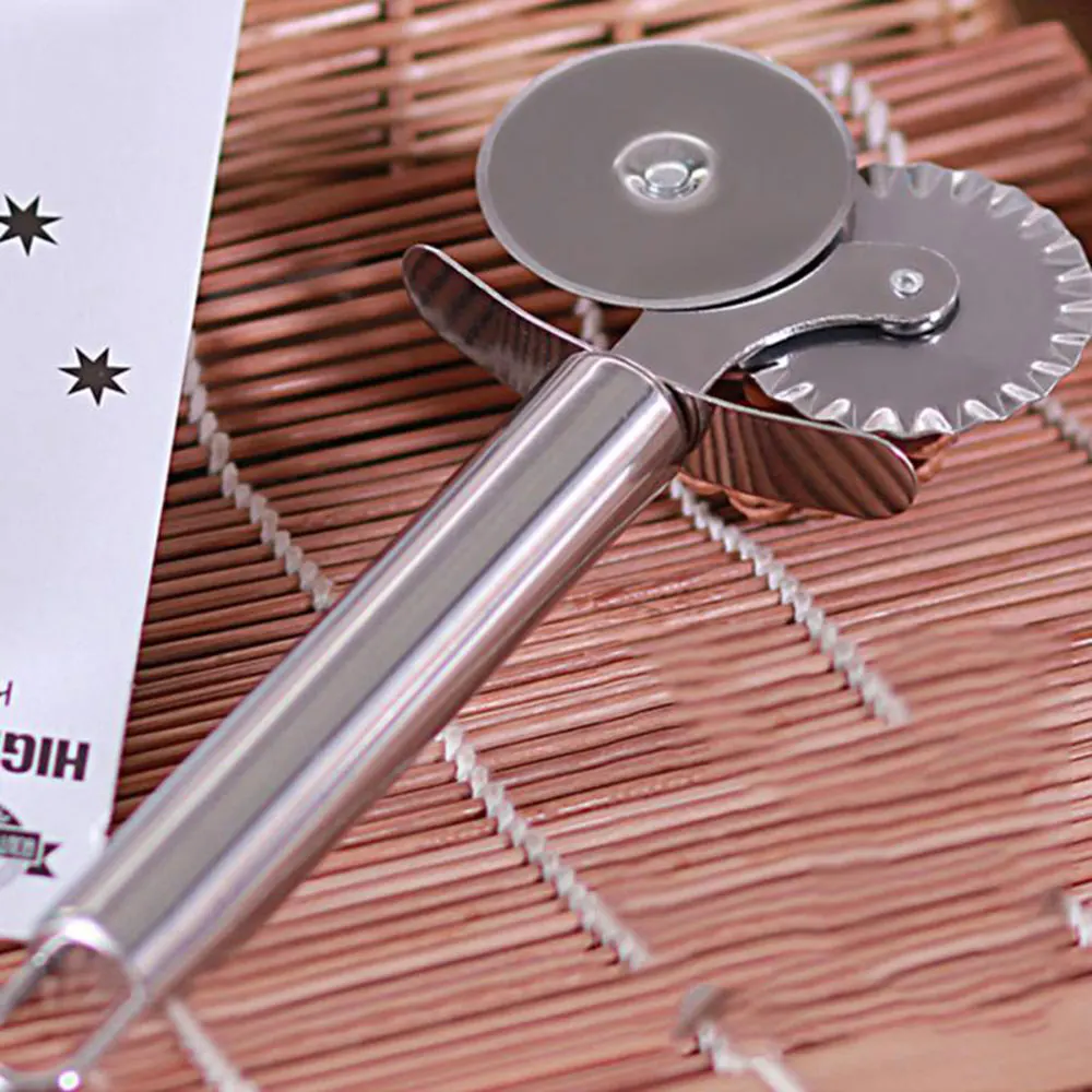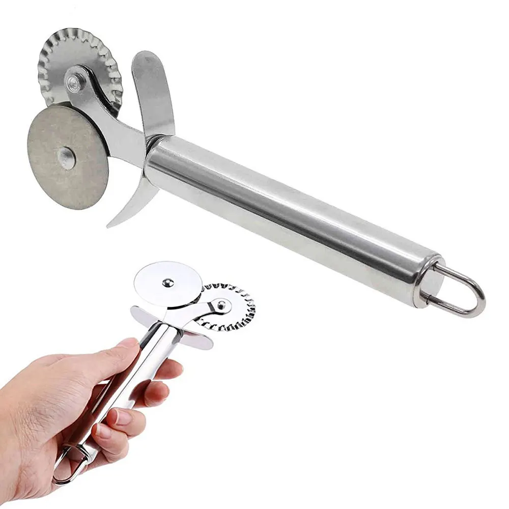 Stainless Steel Double Head Wheel Knife Pizza Cutter Cake Food Cutter Hobbing Trimmer Pastry Pasta Dough kitchen Baking Tools