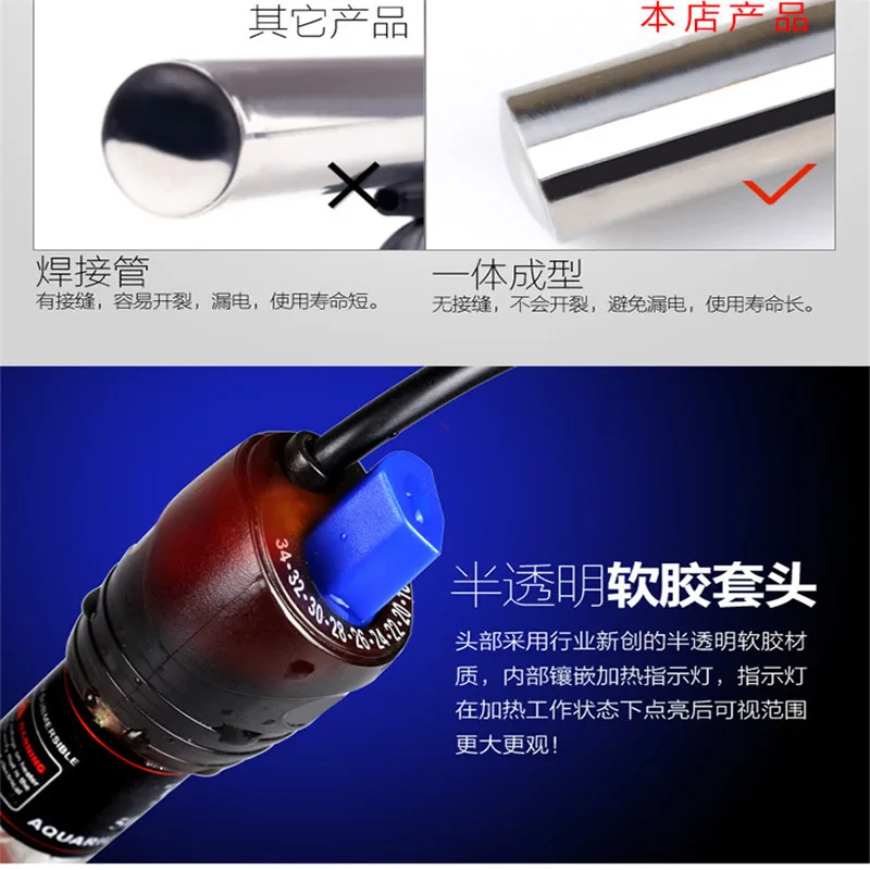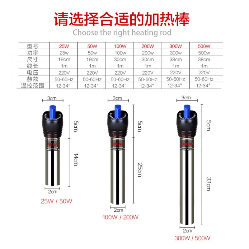 Stainless steel heating rod explosion-proof automatic thermostat ultra-short turtle tank aquarium heater fish tank heater JUN25