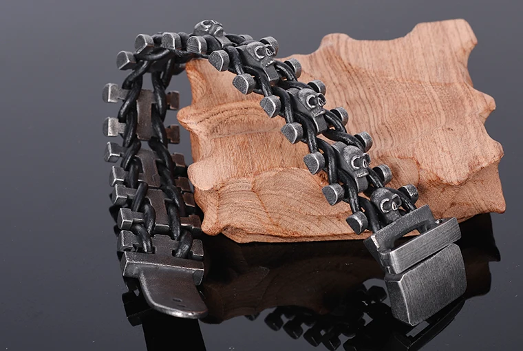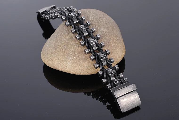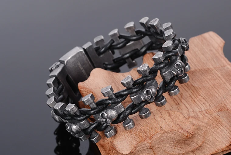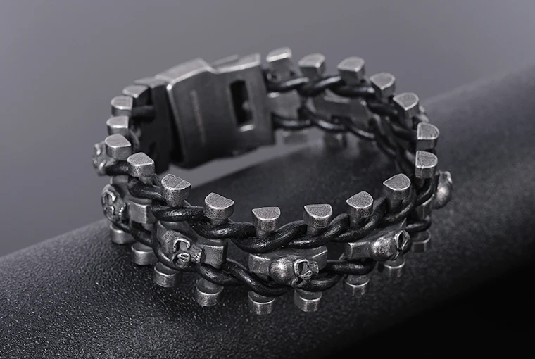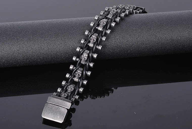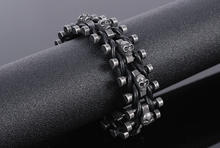 Stainless Steel & Leather Skull Man Bracelet Male Jewelry Dropshipping