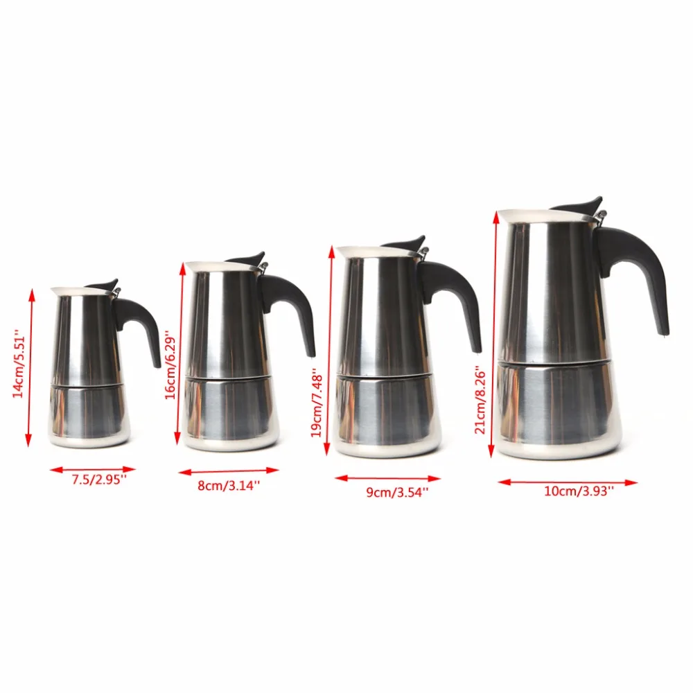 Stainless Steel Mocha Pot Espresso Coffee Maker Stove Tool 100/200/300/450ML