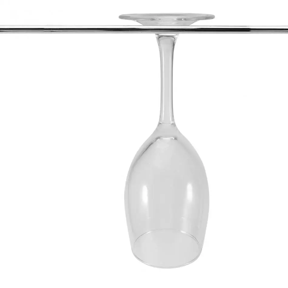 - Easily mounts under shelves or under cabinets to keep stemware tidy and convenient.