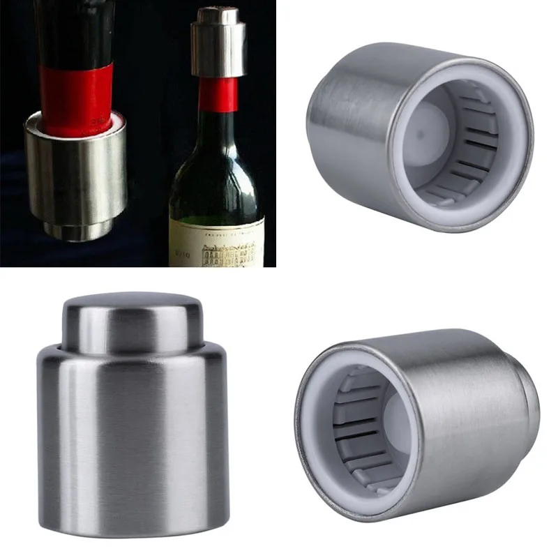 Stainless Steel Wine Bottle Stopper Plug Silver Elegant Vacuum Sealer Wine Stopper Saver Preserver Pump Sealed