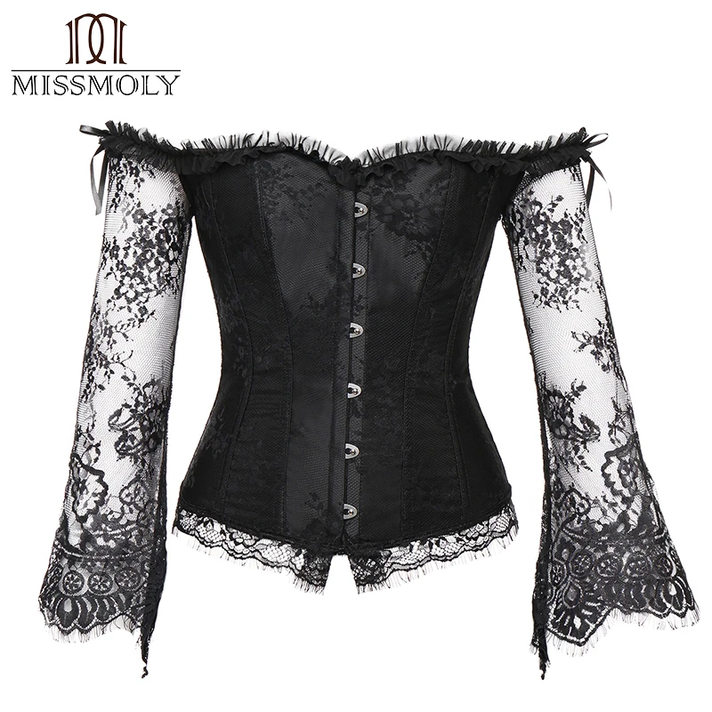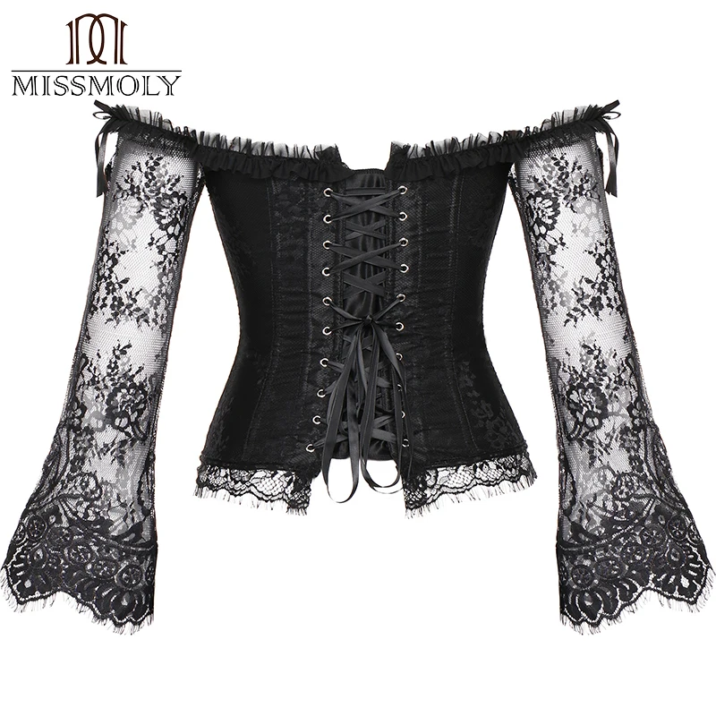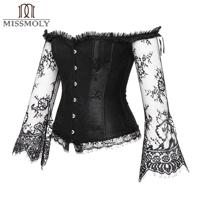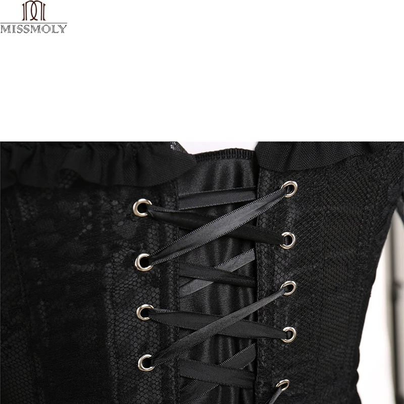 Steampunk Corset Sexy Gothic Bustier Irregular Palace Style Top Lace Strapless Dress 14 Steel Boned Slimming Burlesque Clothes