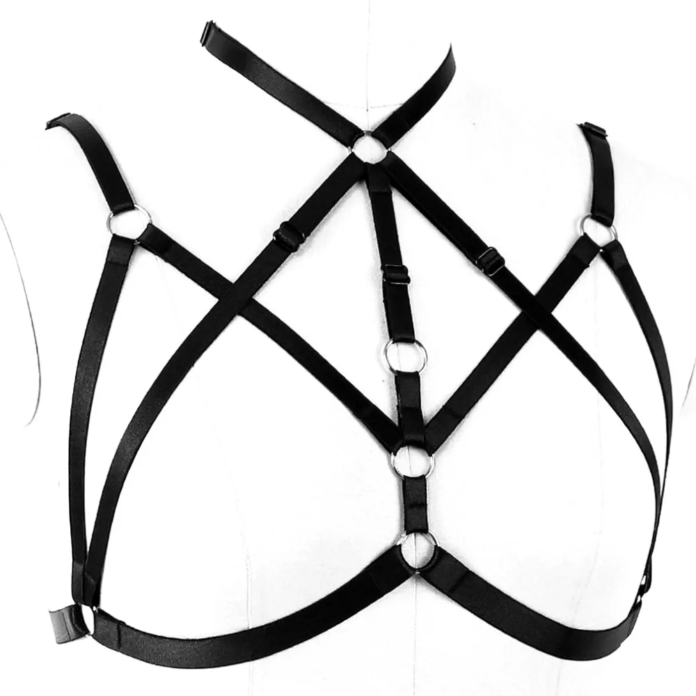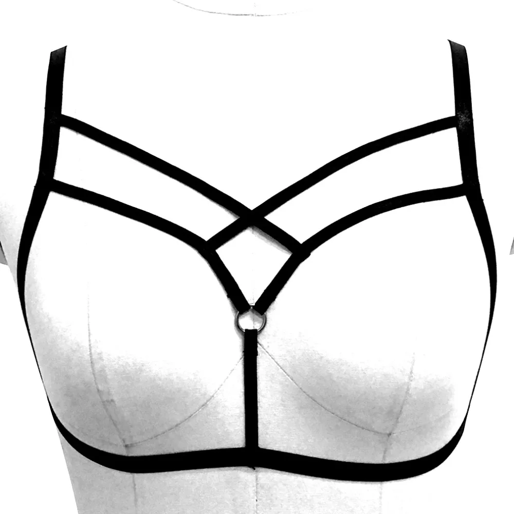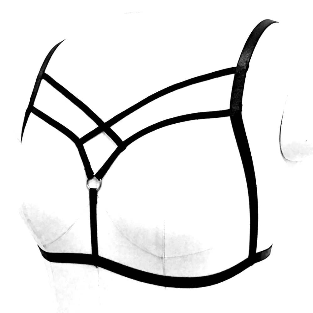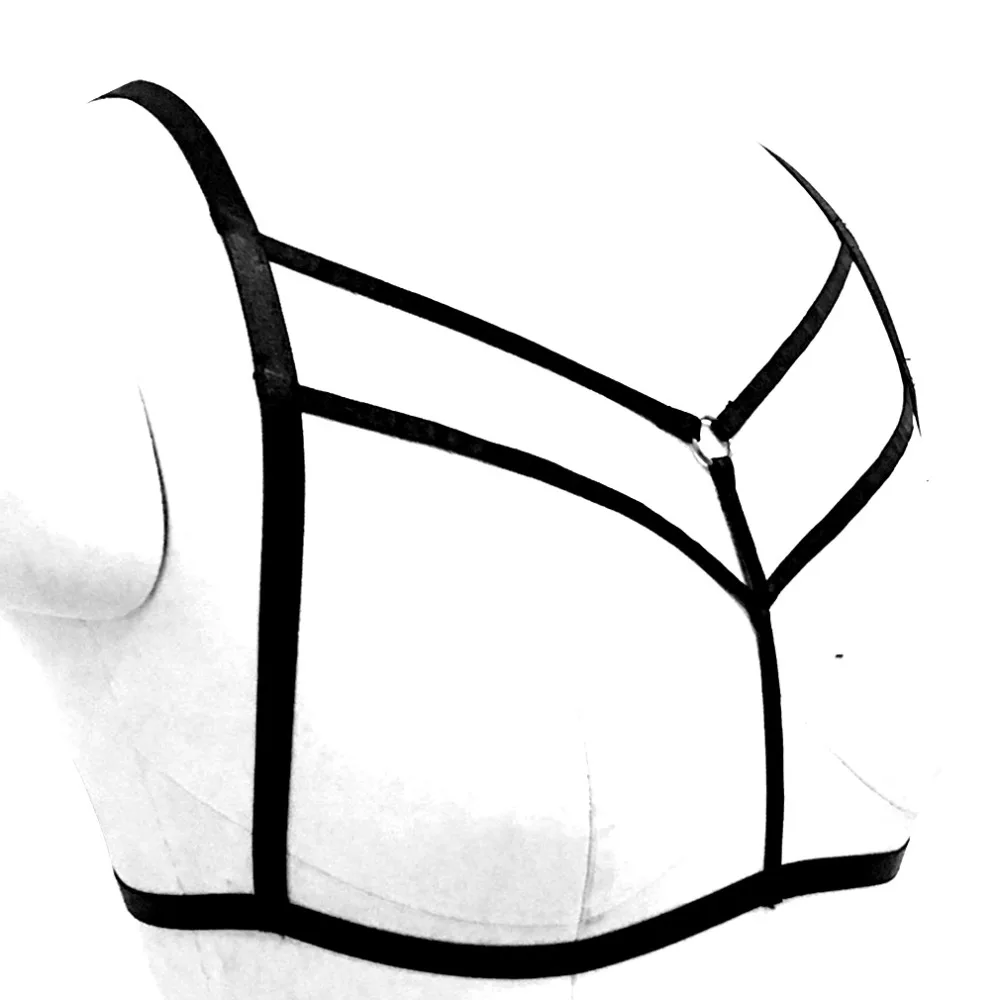 Strappy Harness Bra Women Body Cage Bralette Crop Top Steampunk Goth Fetish Bondage lingerie Plus Size festival Rave wear Garter