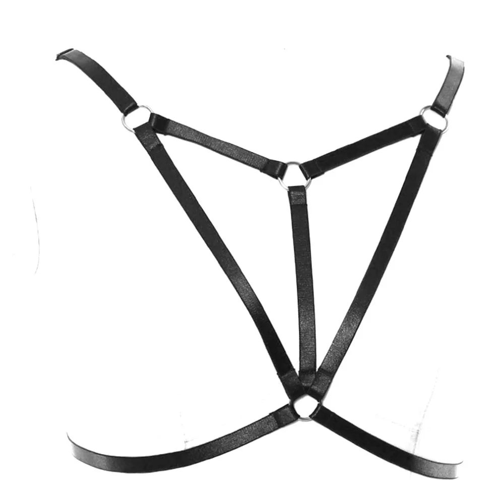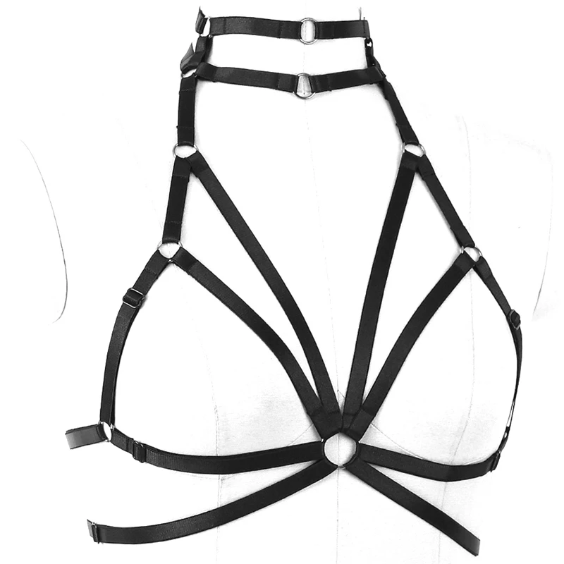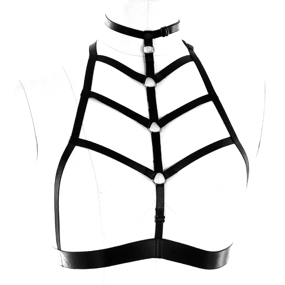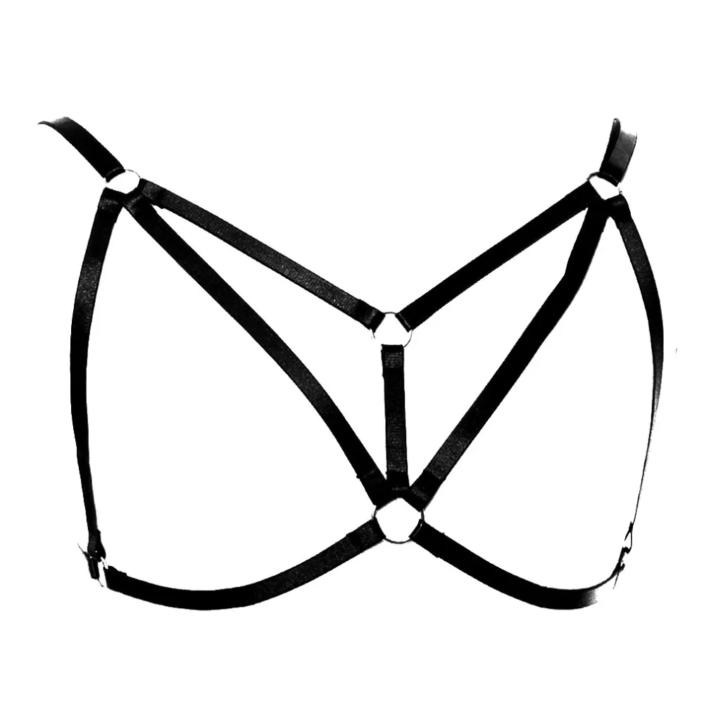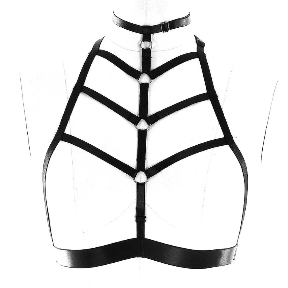Strappy Harness Bra Women Body Cage Bralette Crop Top Steampunk Goth Fetish Bondage lingerie Plus Size festival Rave wear Garter