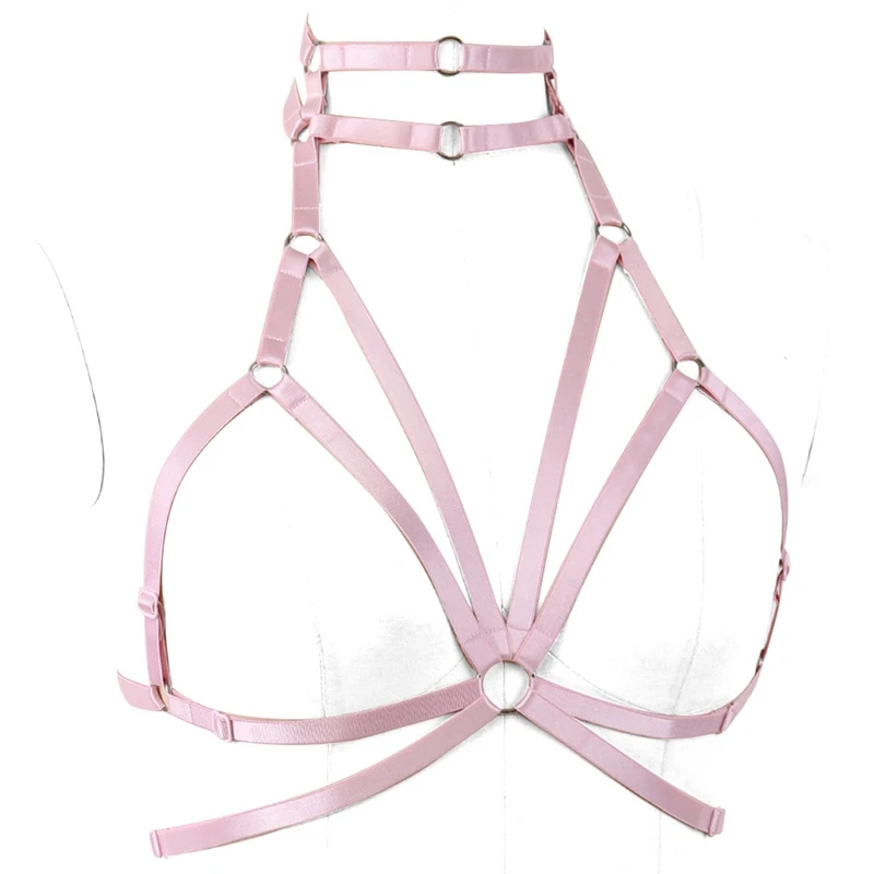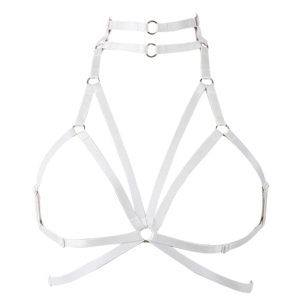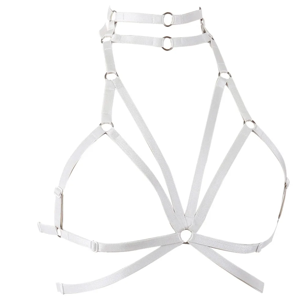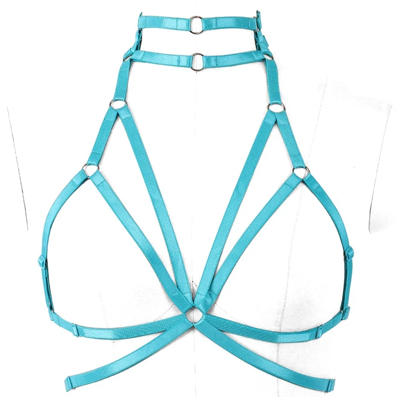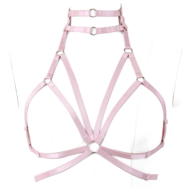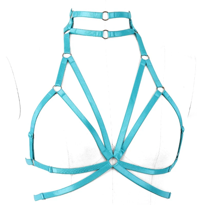 Strappy Harness Bra Women Body Cage Bralette Crop Top Steampunk Goth Fetish Bondage lingerie Plus Size festival Rave wear Garter