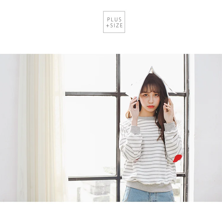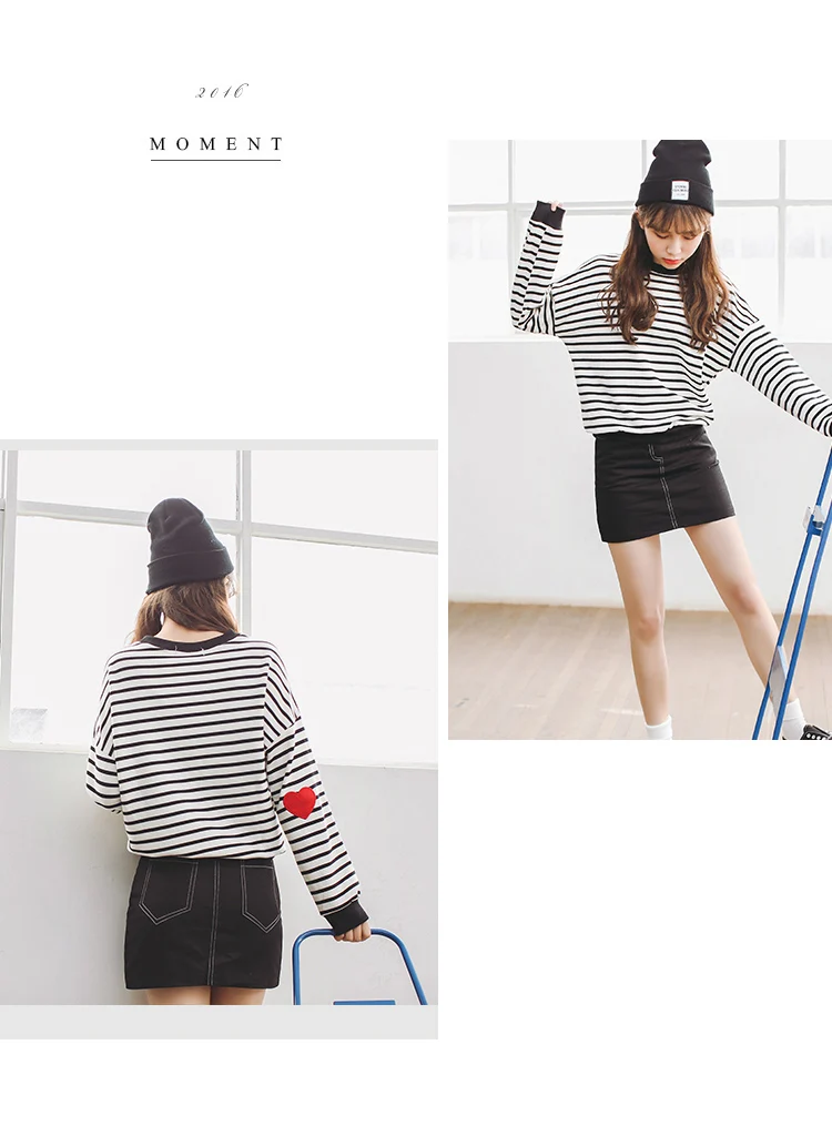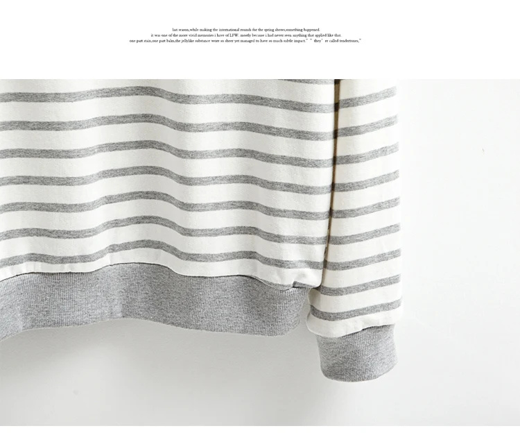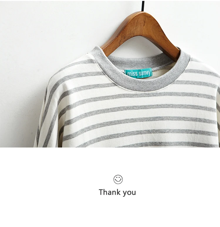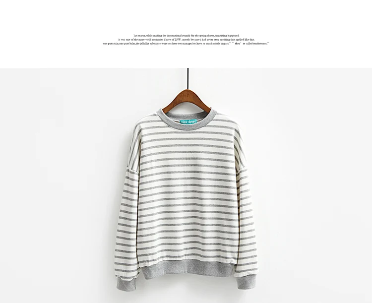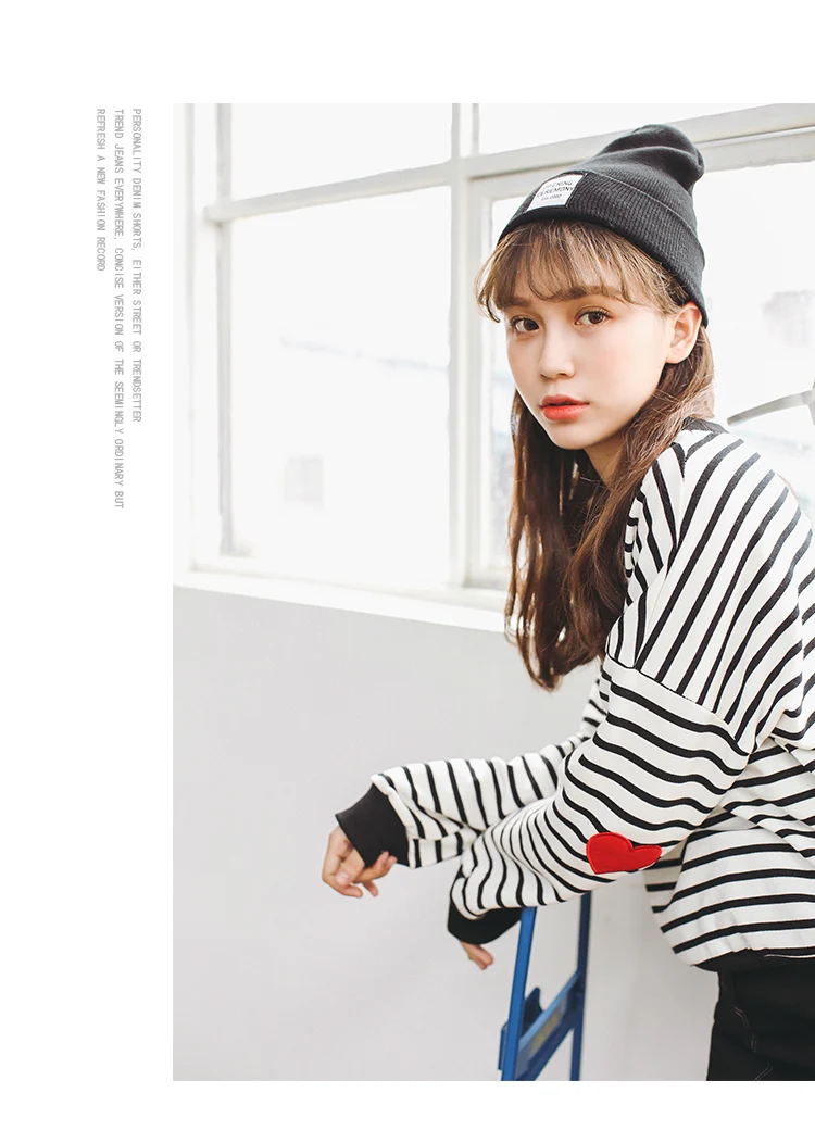 Striped College Wind Heart Embroidered Loose Causal Basic Female Thin Sweatshirt