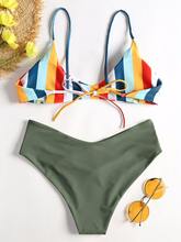 Women Sexy Bikinis Plus Size Halter Bikini Set Print Floral Swimsuits Brazilian Push Up Big Size Female Swimwear Bathing SuitsUSD 16.99/pieceStriped High Leg Cami Bikini