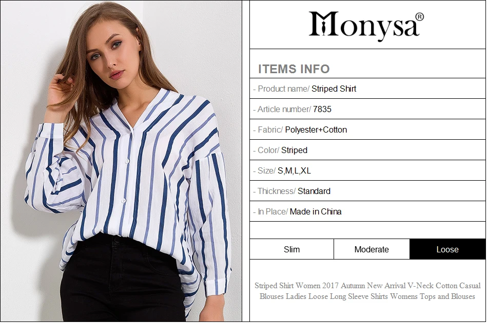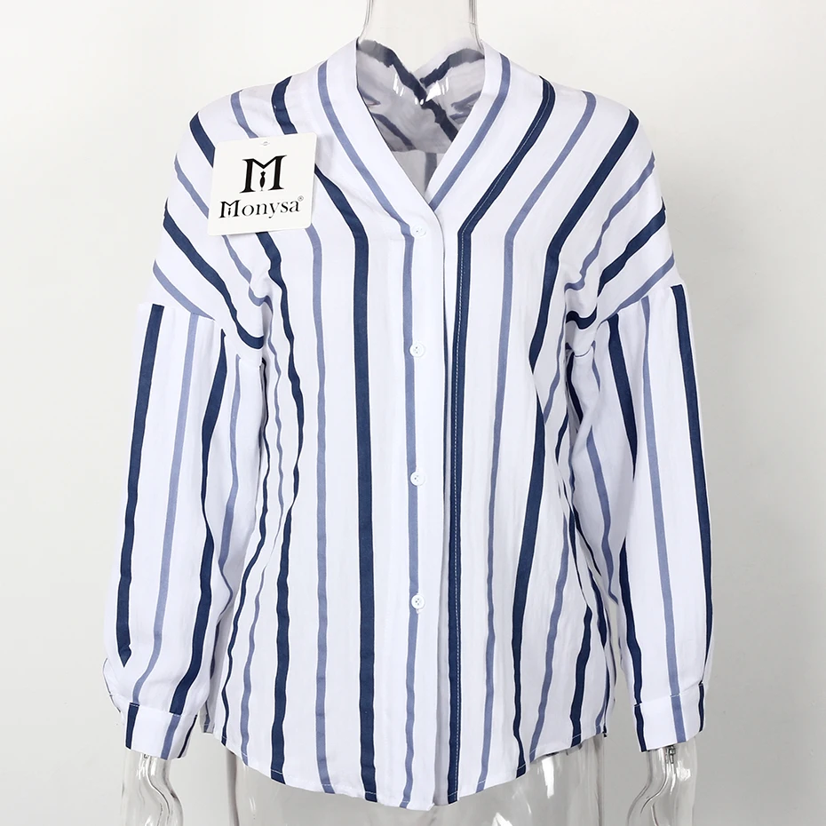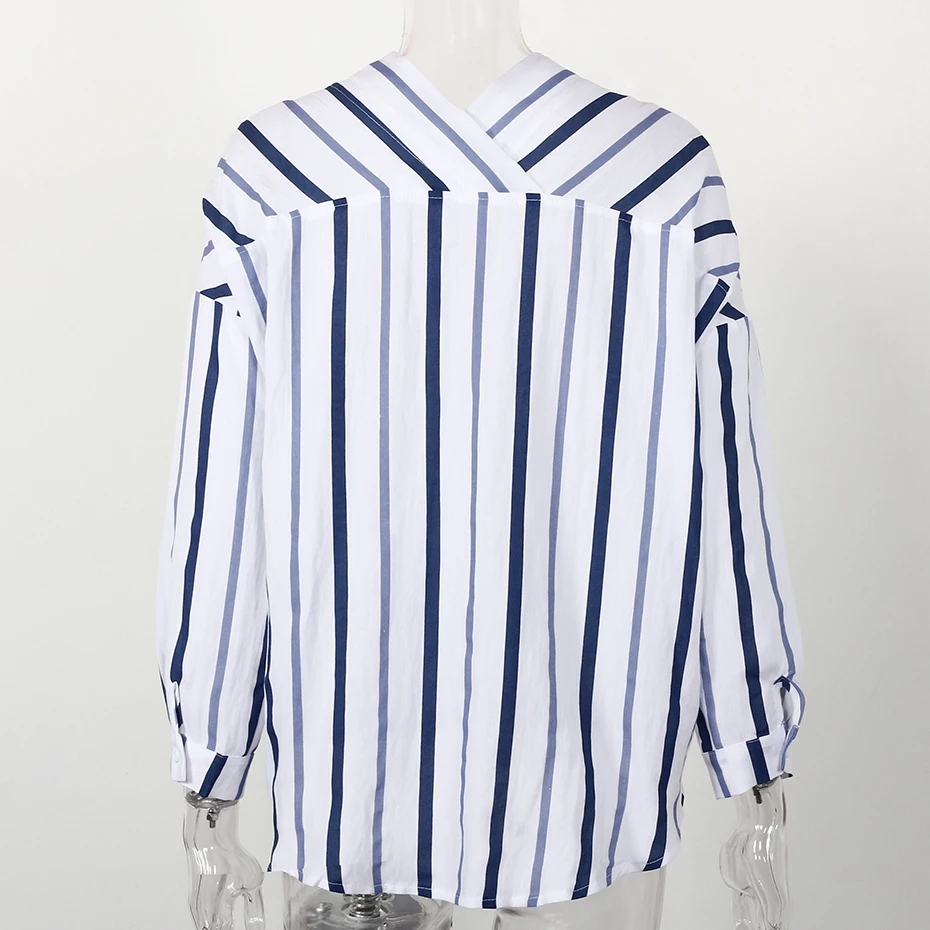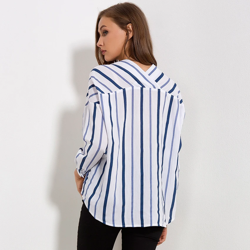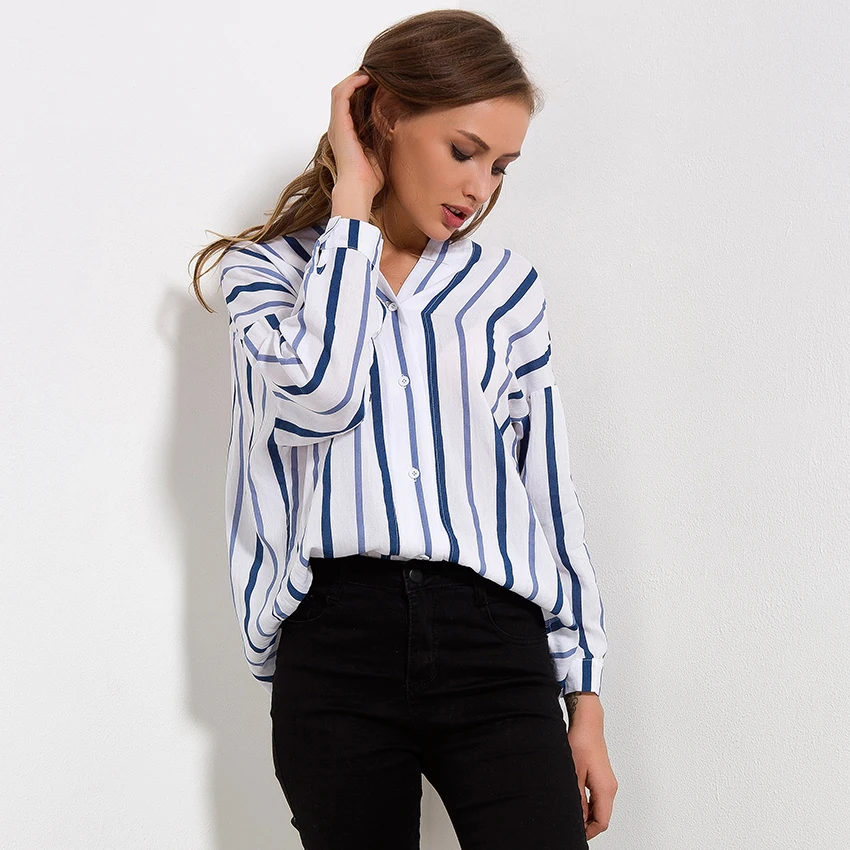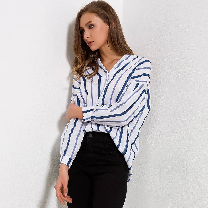 Striped Shirt Women 2018 Autumn New Arrival V-Neck Cotton Casual Blouses Ladies Loose Long Sleeve Shirts Womens Tops and Blouses