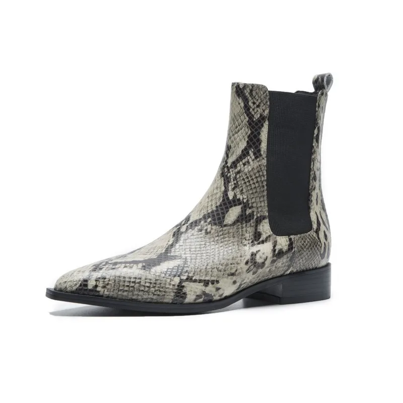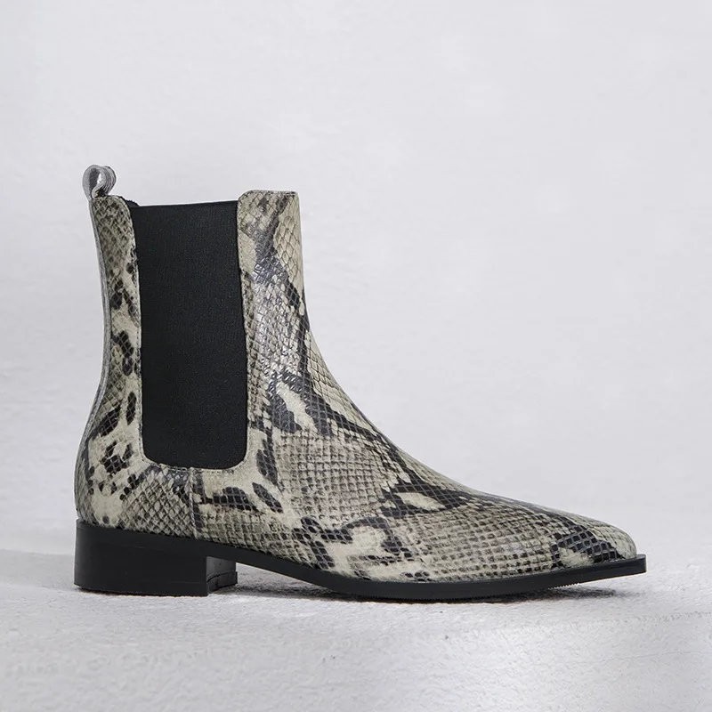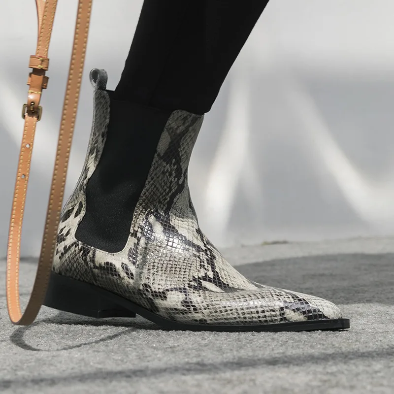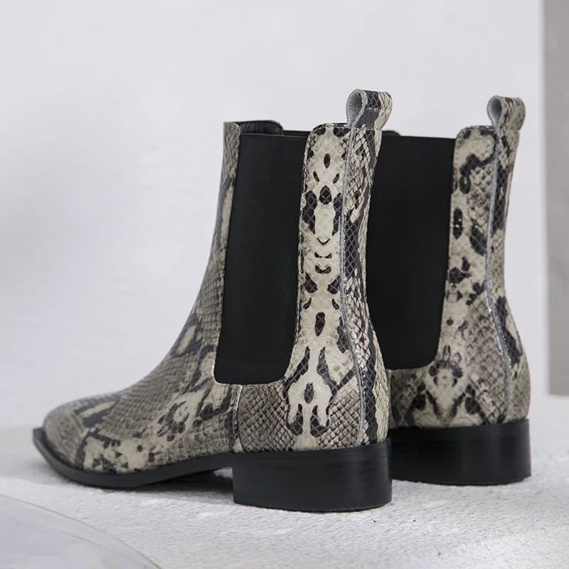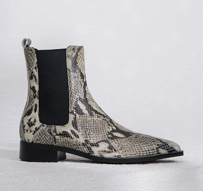 Stylesowner 2018 Newest Snake skin cow leather Short Boots pointy toe runway style Ankle Boots for women low heel knight boot