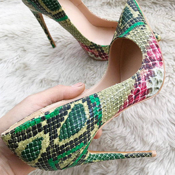 Stylesowner 33-44 Size Sexy Women Pumps Green Snake Pattern Extreme high heels Shoes Pointy Toe Fashion Party Dress Shoes Woman