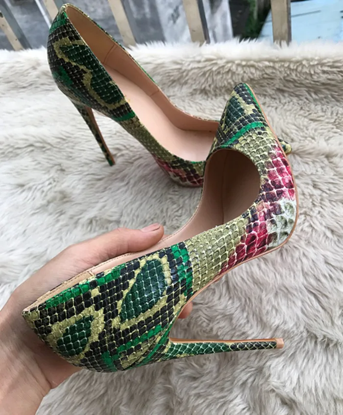 Stylesowner 33-44 Size Sexy Women Pumps Green Snake Pattern Extreme high heels Shoes Pointy Toe Fashion Party Dress Shoes Woman