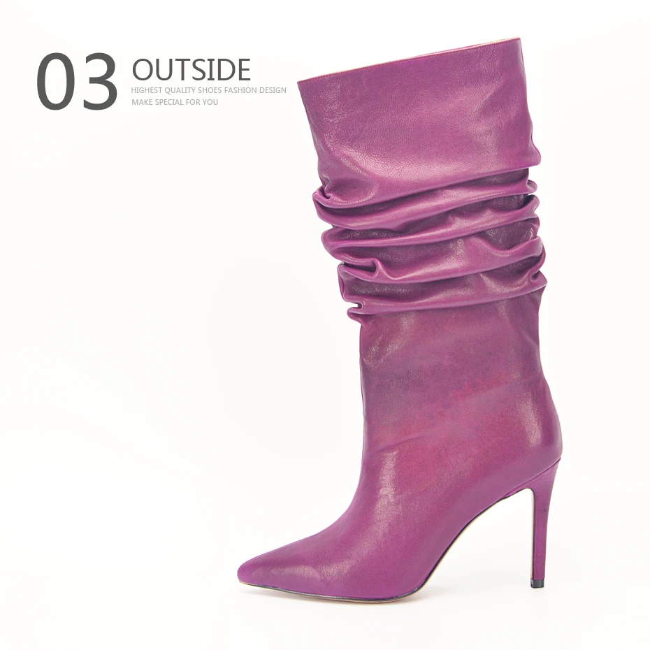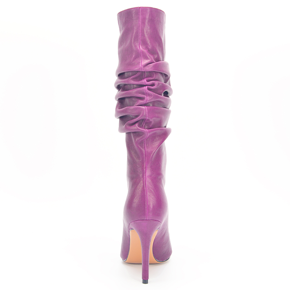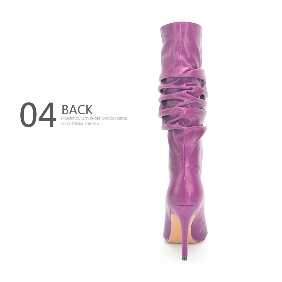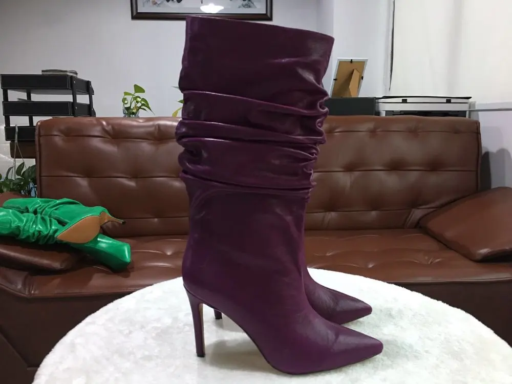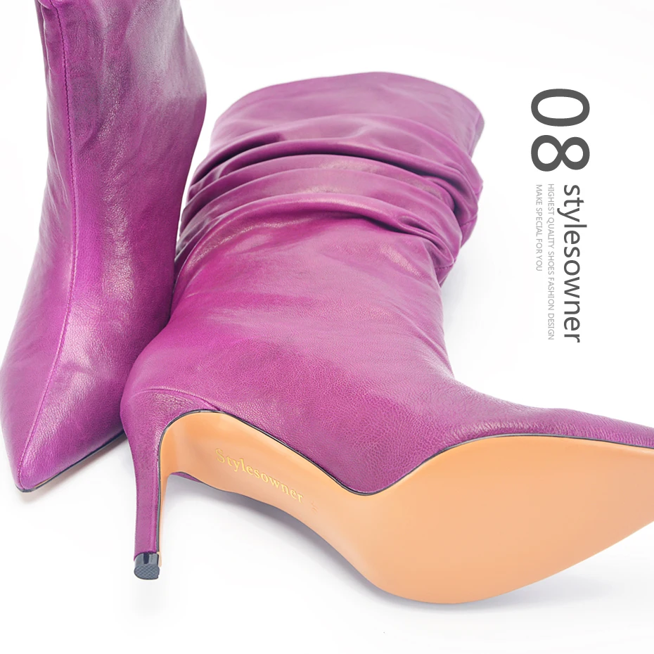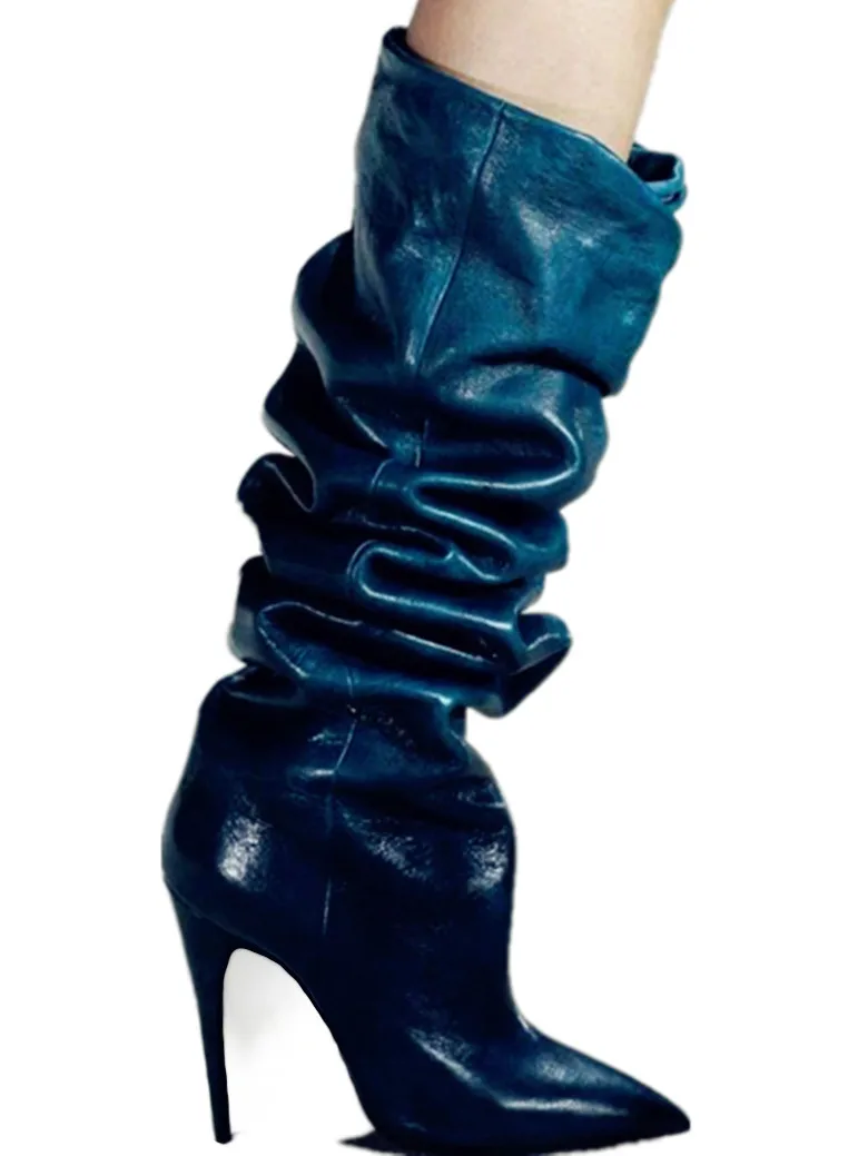 Stylesowner Pleated Women Knee Boots Sexy Stiletto High Heel Stage Show Boots Runway Chic Pointed Toe Wrinkle Ruffled Boots For Lady