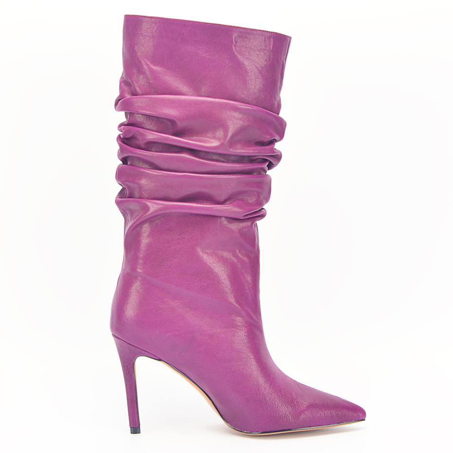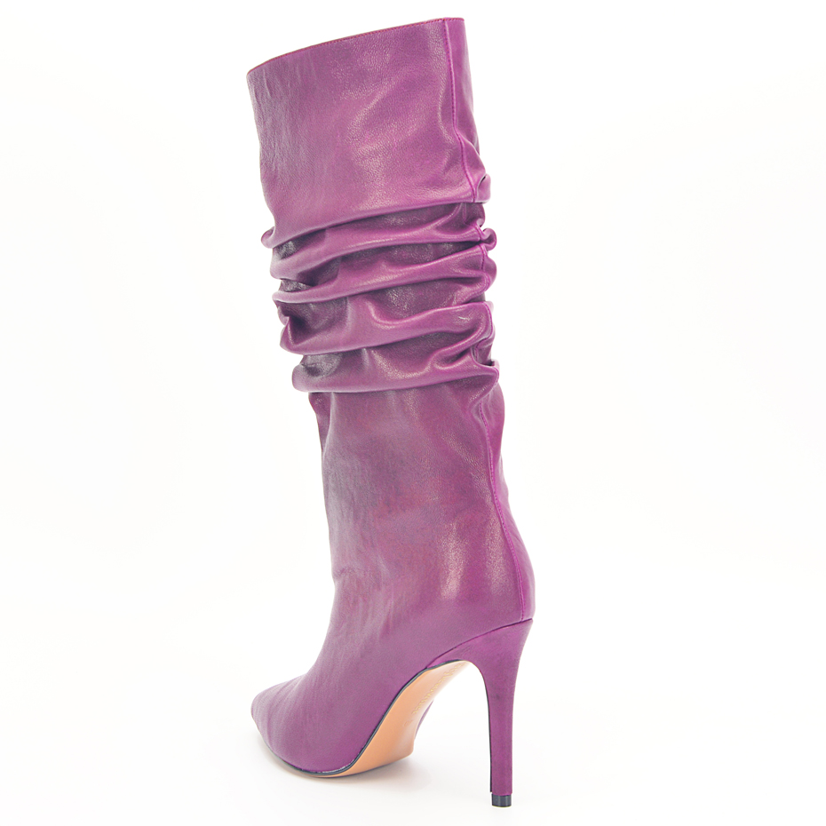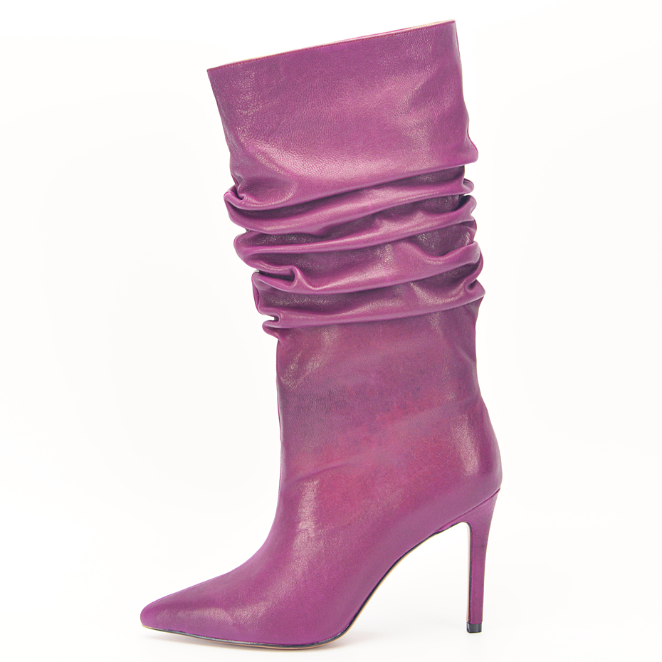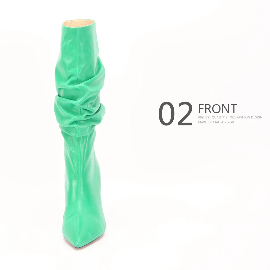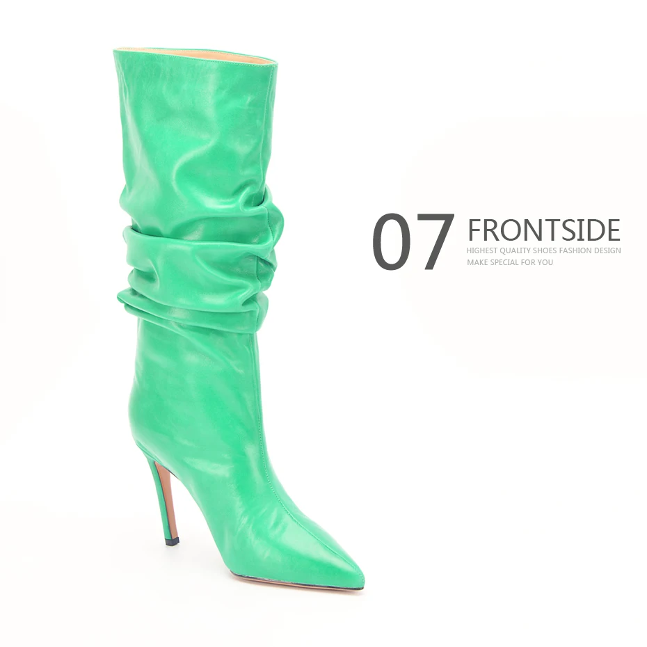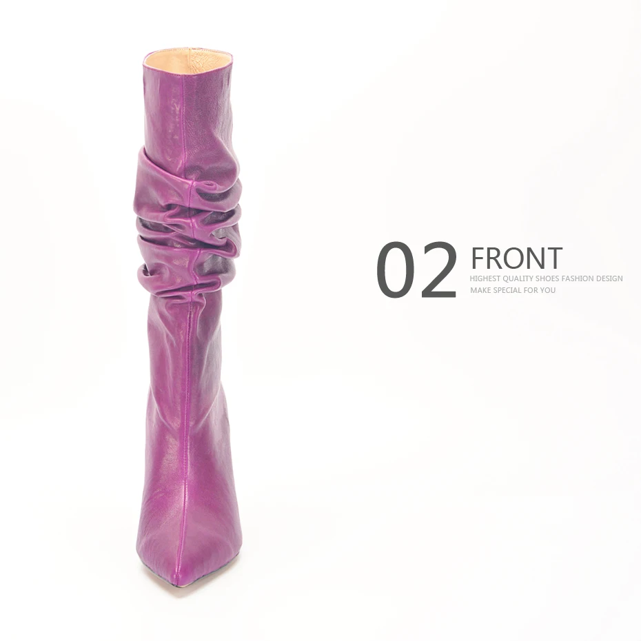Stylesowner Pleated Women Knee Boots Sexy Stiletto High Heel Stage Show Boots Runway Chic Pointed Toe Wrinkle Ruffled Boots For Lady