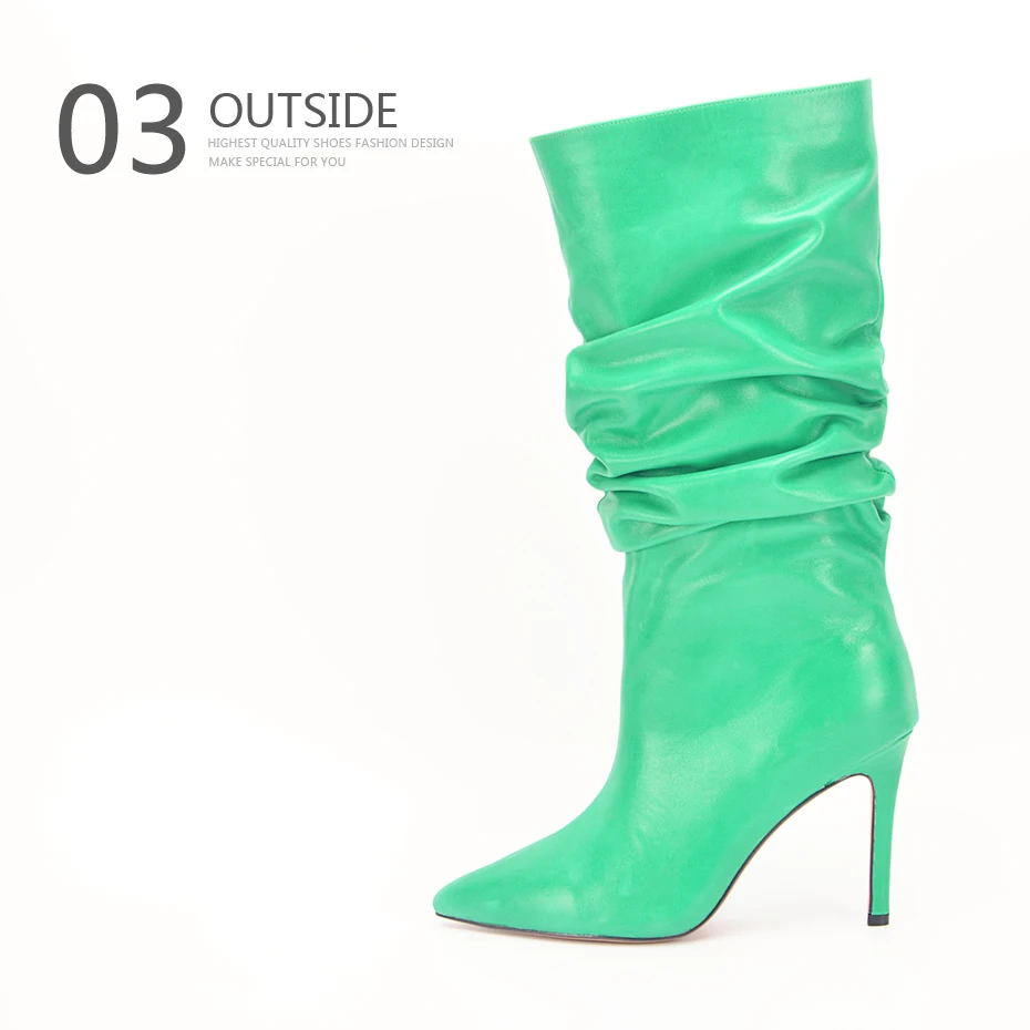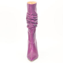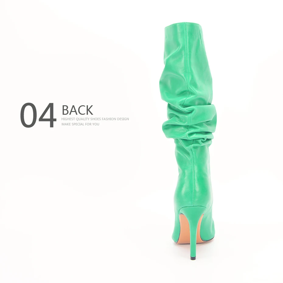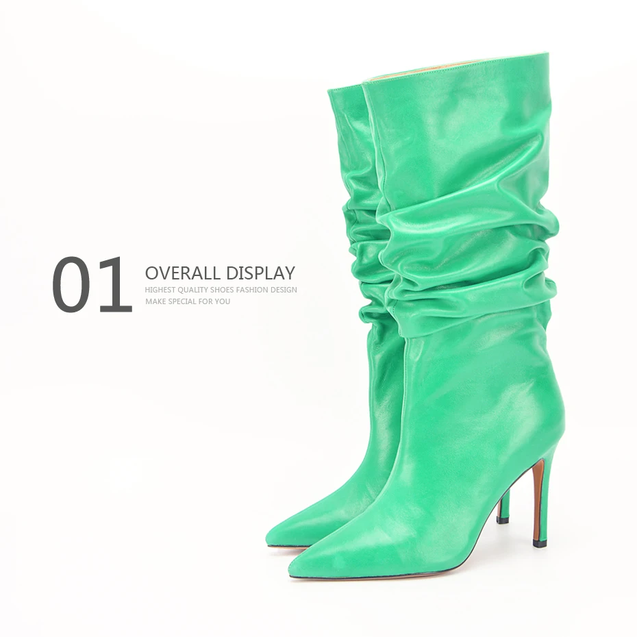 Stylesowner Pleated Women Knee Boots Sexy Stiletto High Heel Stage Show Boot Runway Chic Pointed Toe Wrinkle Ruffled Boots Lady