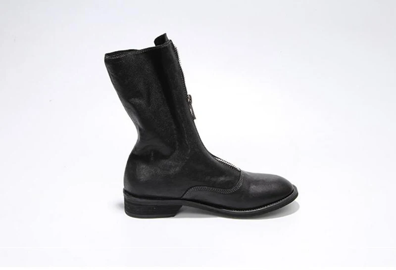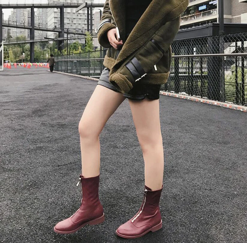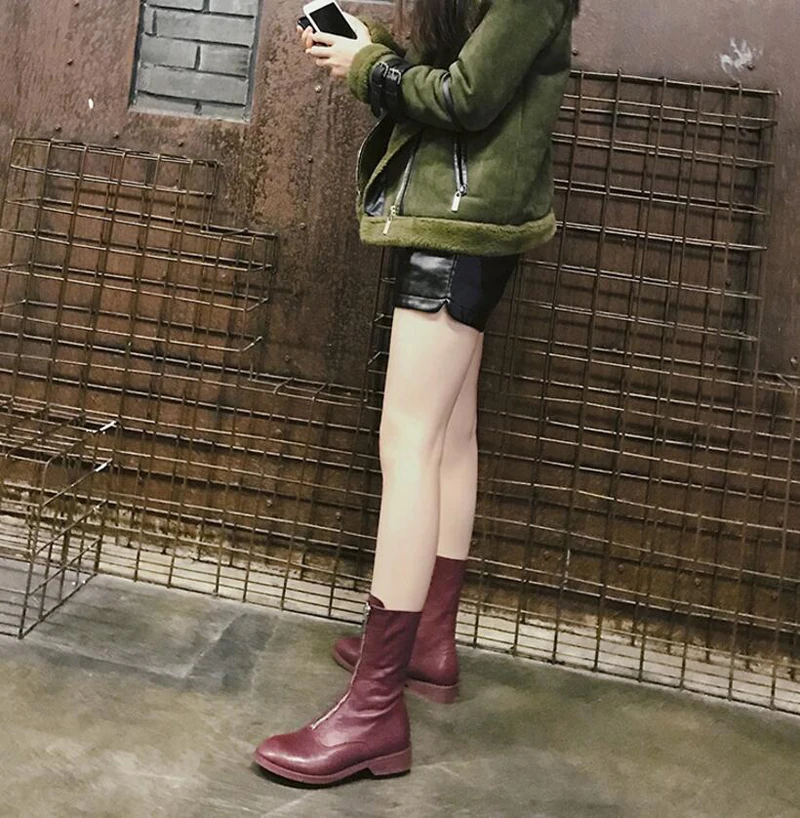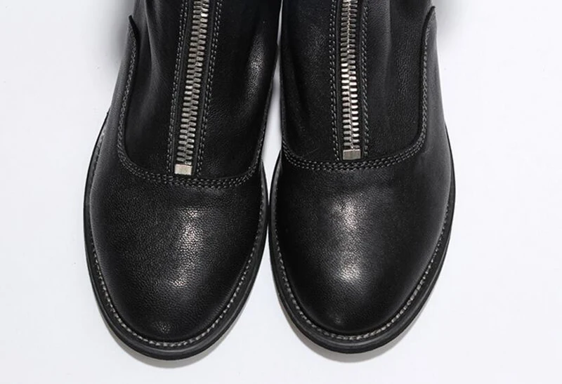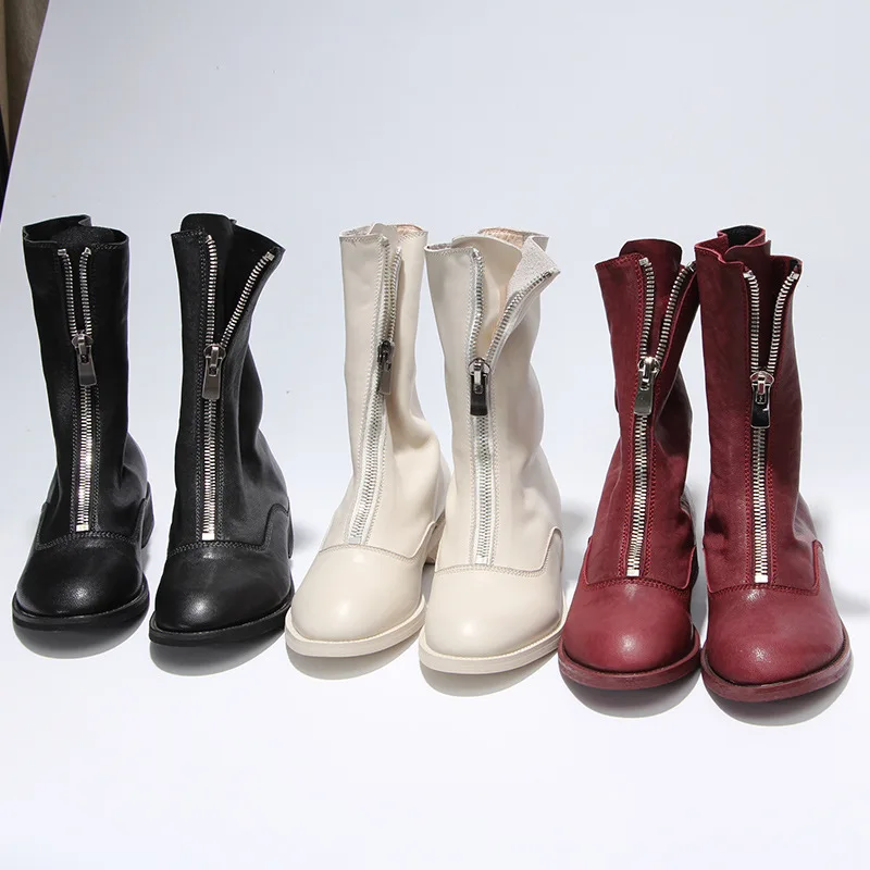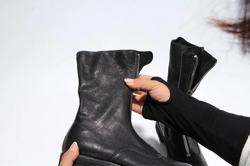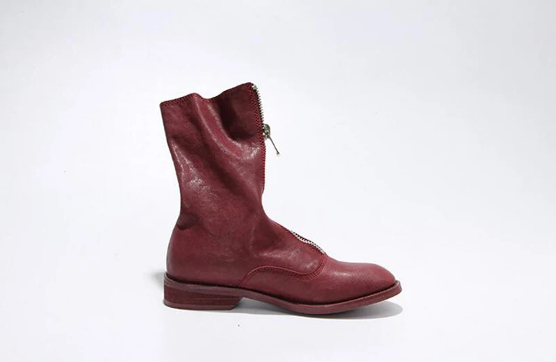 Stylesowner Sheepskin Leather Front Zipper Martin Boots Vintage Do Old Wrinkle Leather Fashion Round Toe Motorcycle Bootie 34-43
