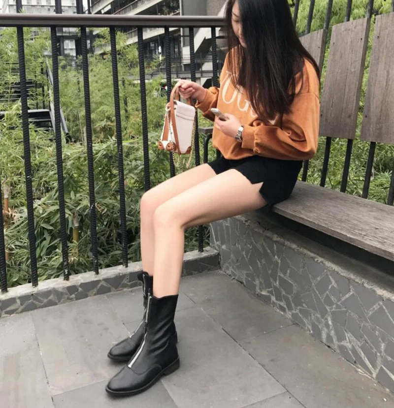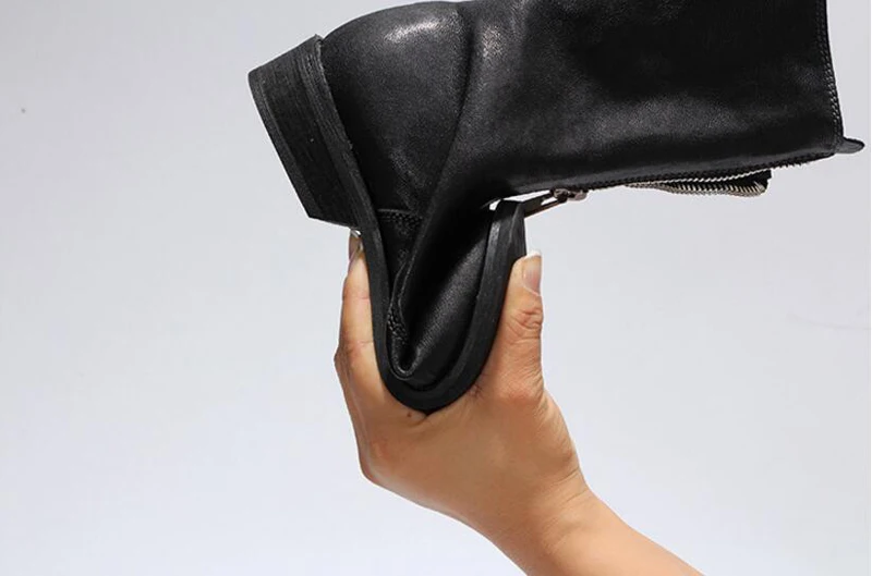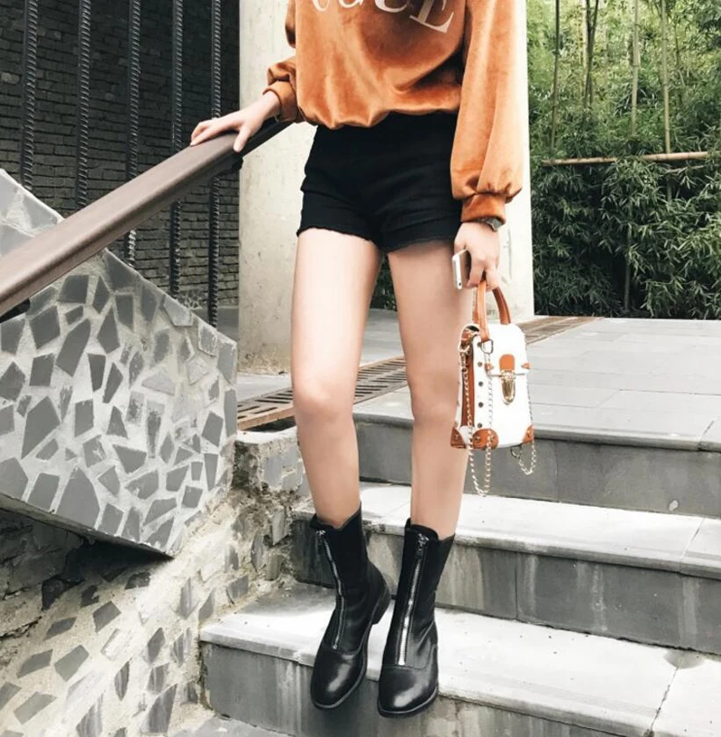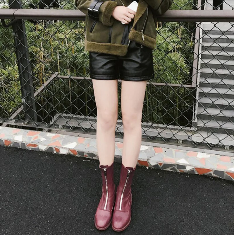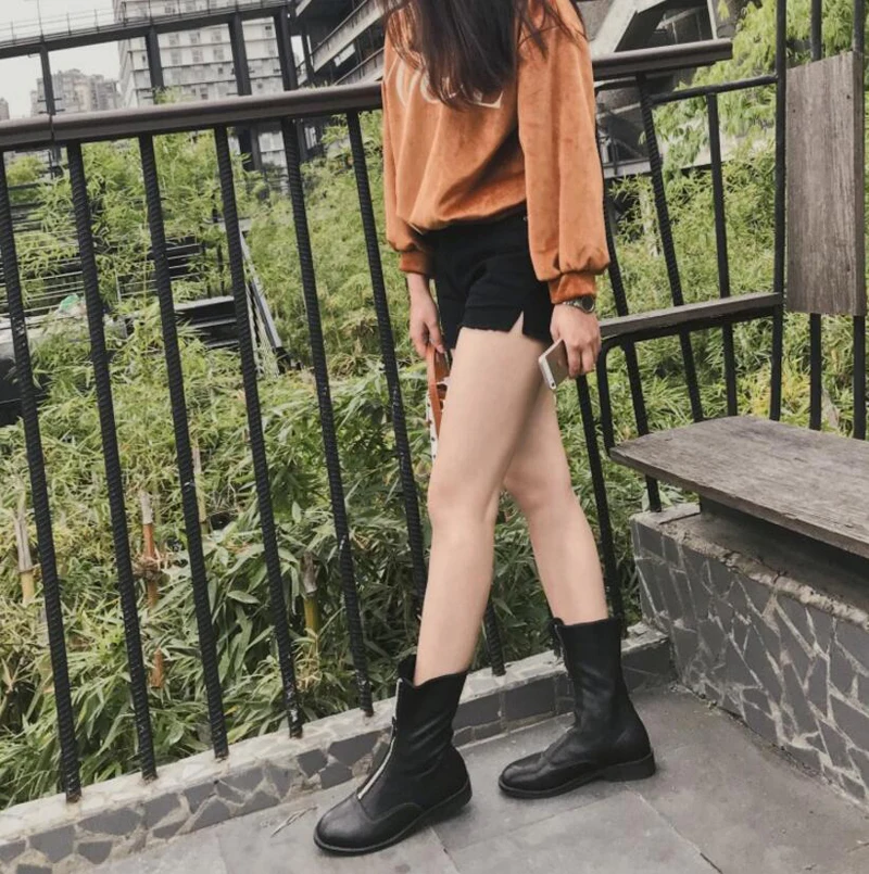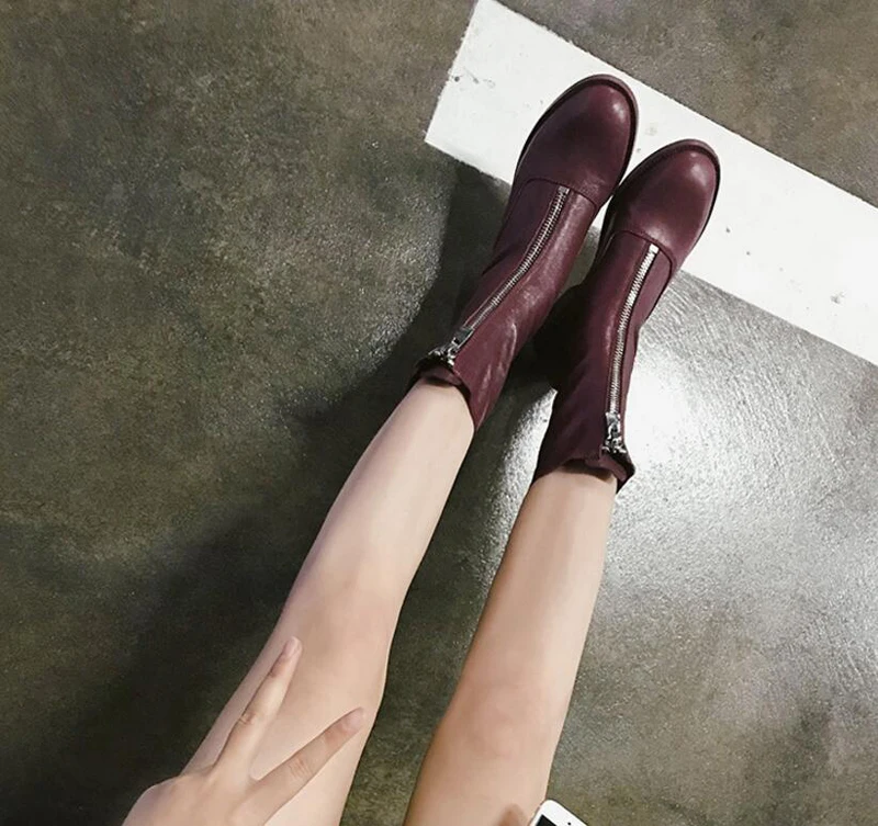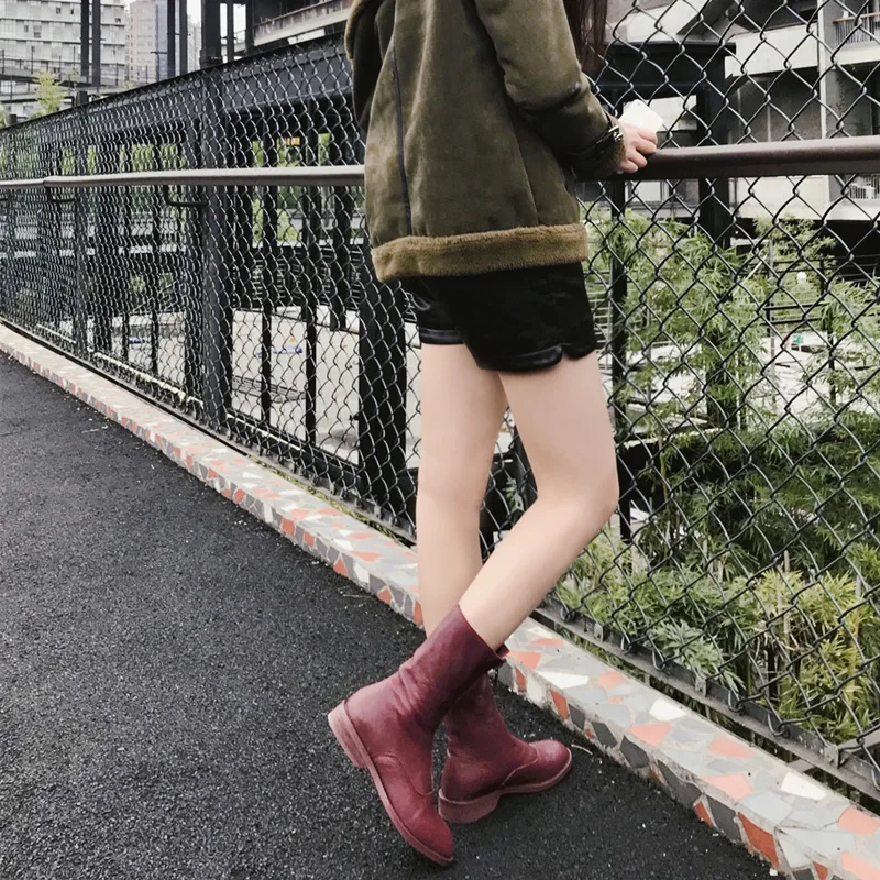 Stylesowner Sheepskin Leather Front Zipper Martin Boots Vintage Do Old Wrinkle Leather Fashion Round Toe Motorcycle Bootie 34-43