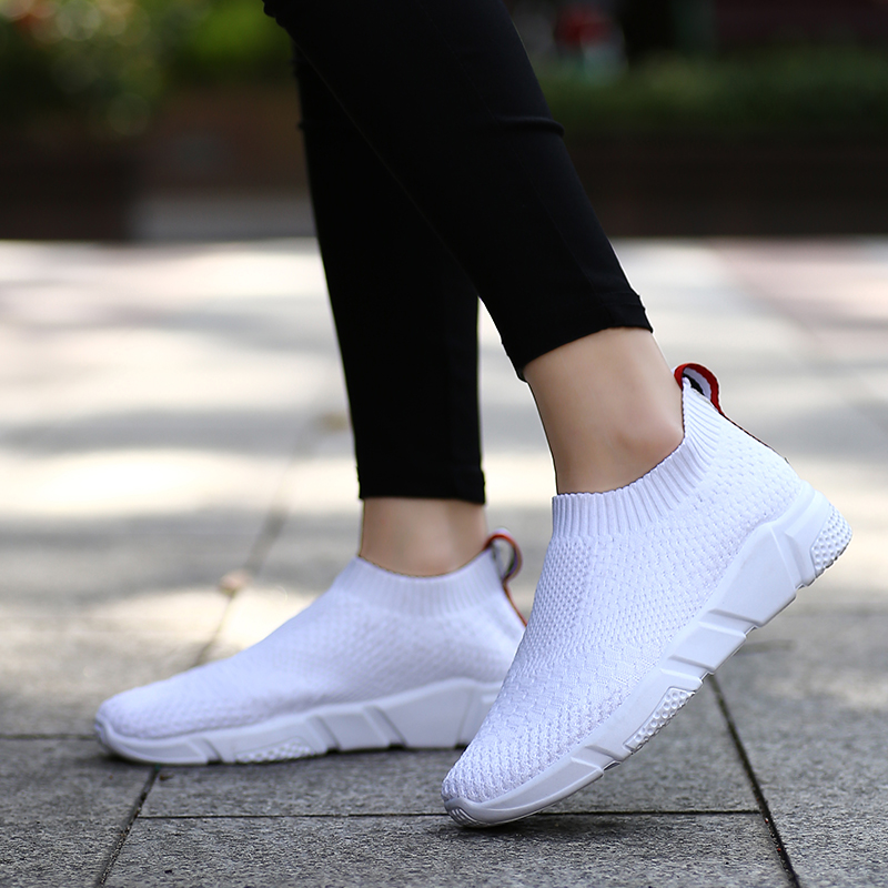 Summer Athletic Sneakers For Women Breathable Mesh Sport Shoes Girls Outdoor Super Light Running Shoes White Black Red Sock Shoes