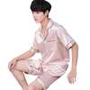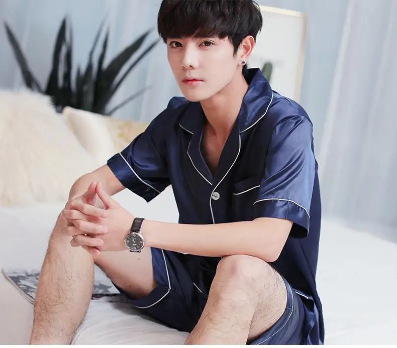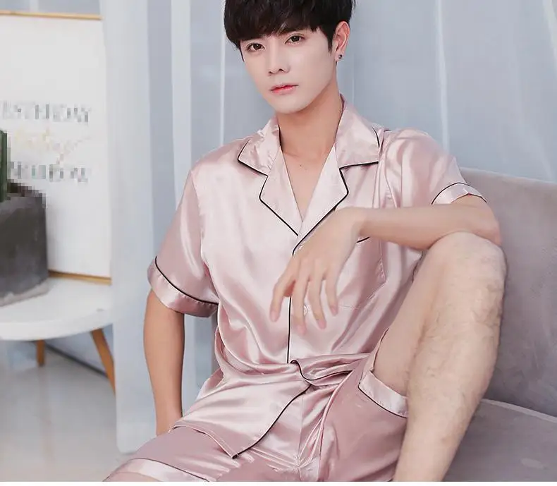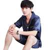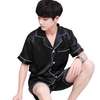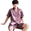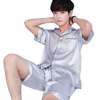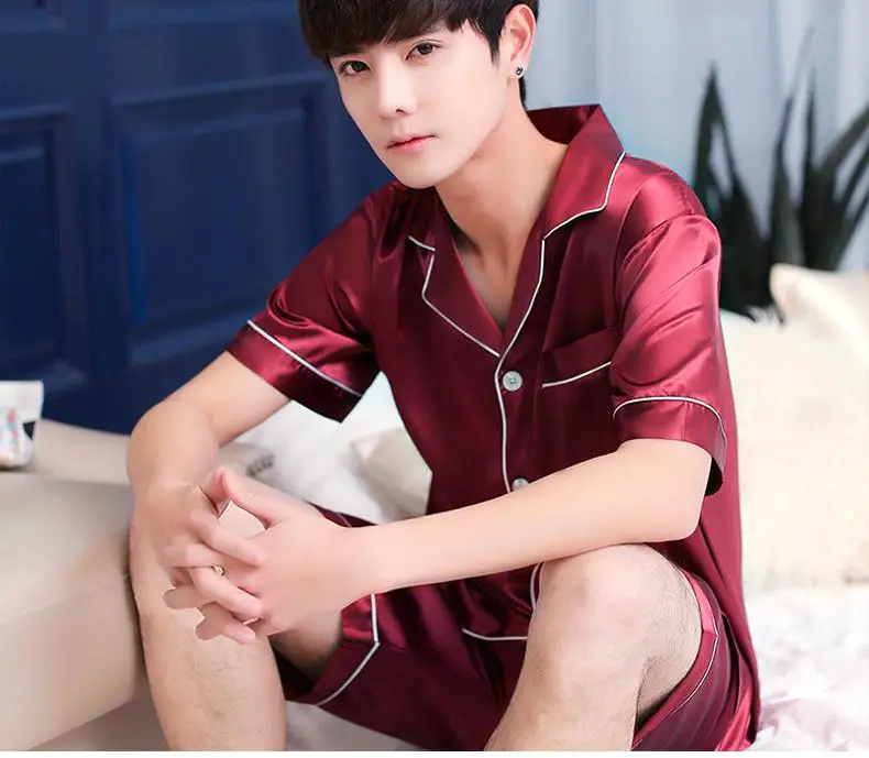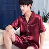 Summer Burgundy 2PCS Shirt&Shorts Satin Pajamas Suit Men Home Clothes Intimate Lingerie Negligee Lounge Nightwear Oversize 3XL
