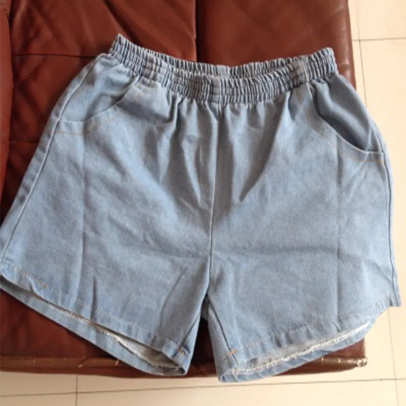 Summer Casual Beach Soft Loose Jeans Short For Women Elastic Waist Plus Size Denim Shorts Hot Trousers Blue Corto Hotpants