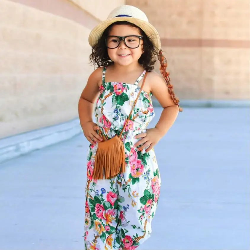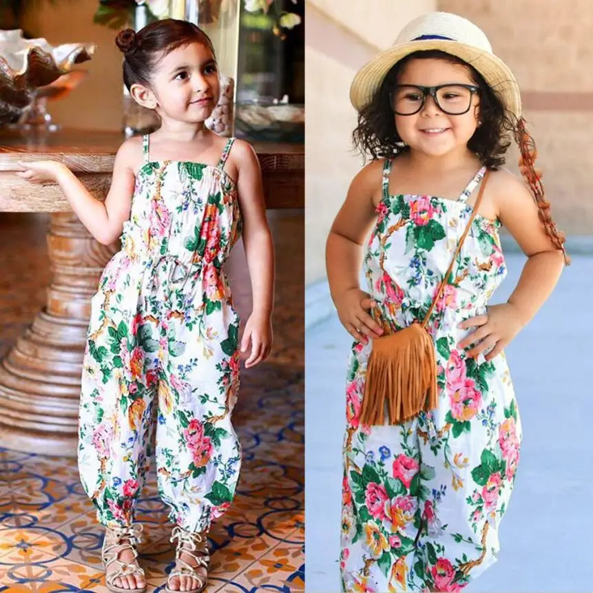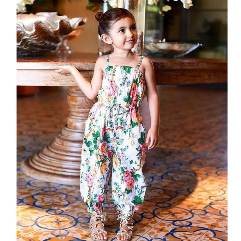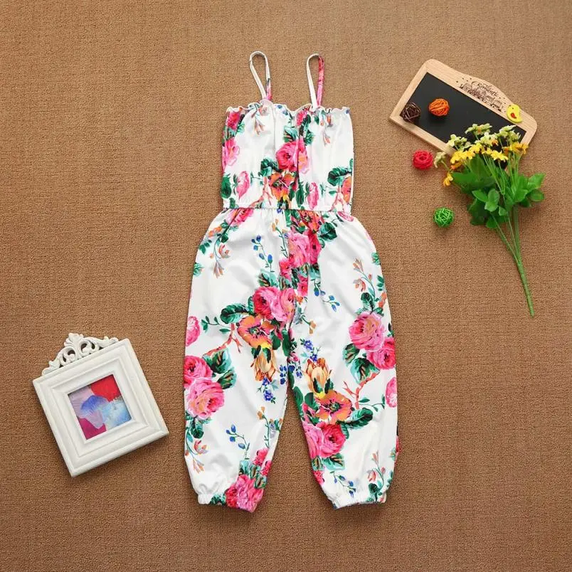 Summer Clothes children Overalls Girls Floral Print Sleeveless Strap Rompers Jumpsuit Outfits Photography Props Kids’ fashion