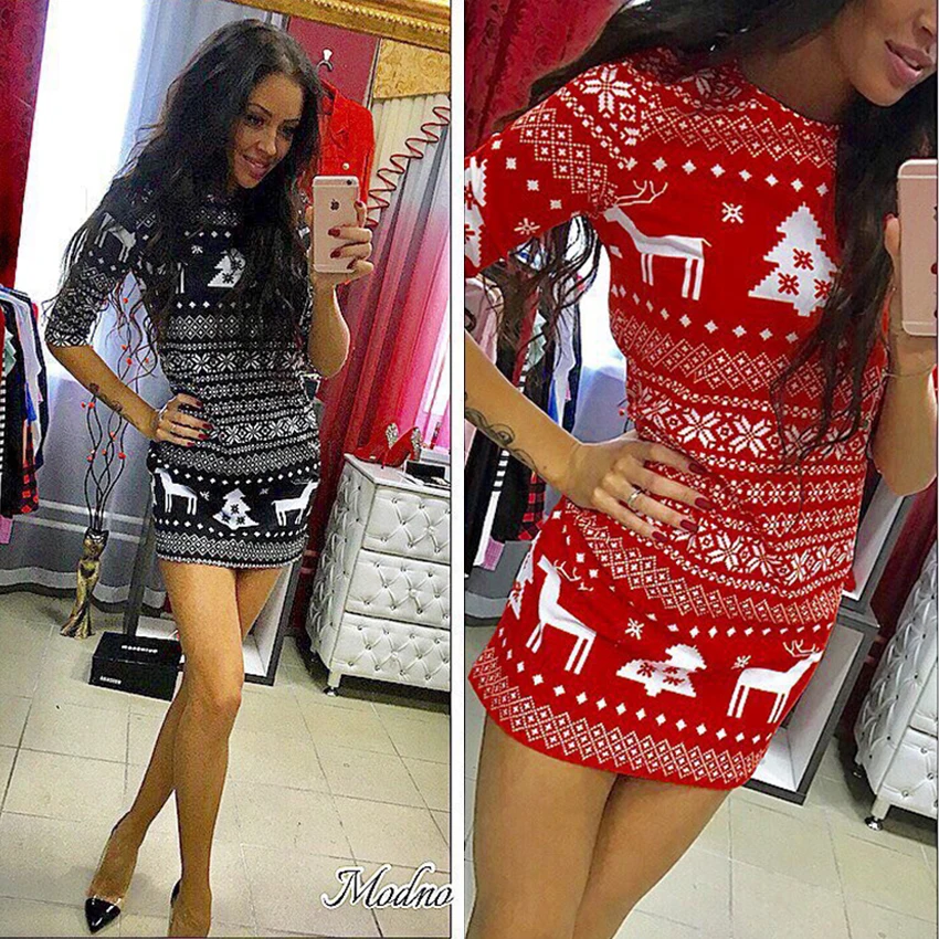 Summer fashion 2018 Cute christmas fawn Red Black Women elegant Dress Office Lady O-Neck Regular Straight