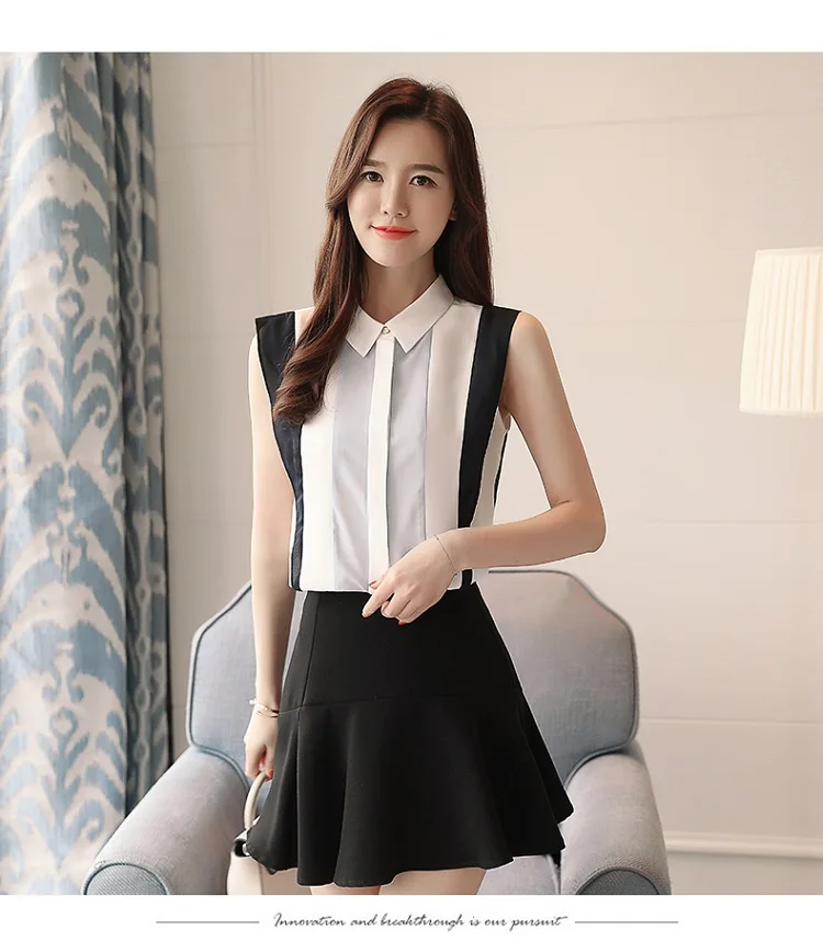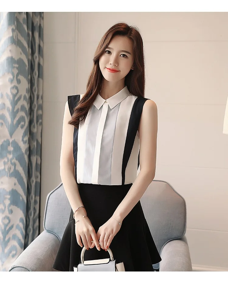 summer fashion sleeveless blouses 2018 new chiffon shirts office lady patchwork women tops casual style women clothing 0011 30