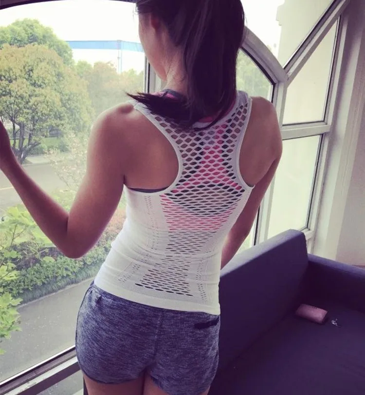 Summer Hollow Out Women sports vest Dry Quick Loose Gym Tight Tank Tops Fitness Sport Sleeveless Vest Singlet for Running vest