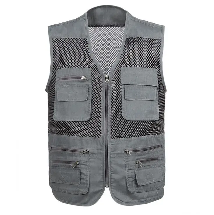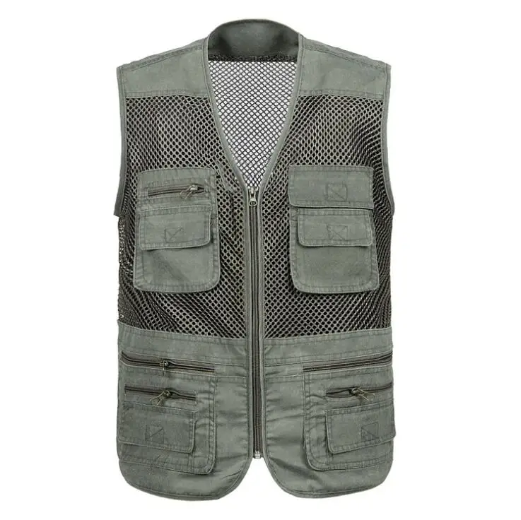Summer leisure Male Mesh Vests 3XL 4XL Vest Middle-aged Mens Outdoors Cotton Multi Pocket Sleevless Jacket Big size Men Outerwea