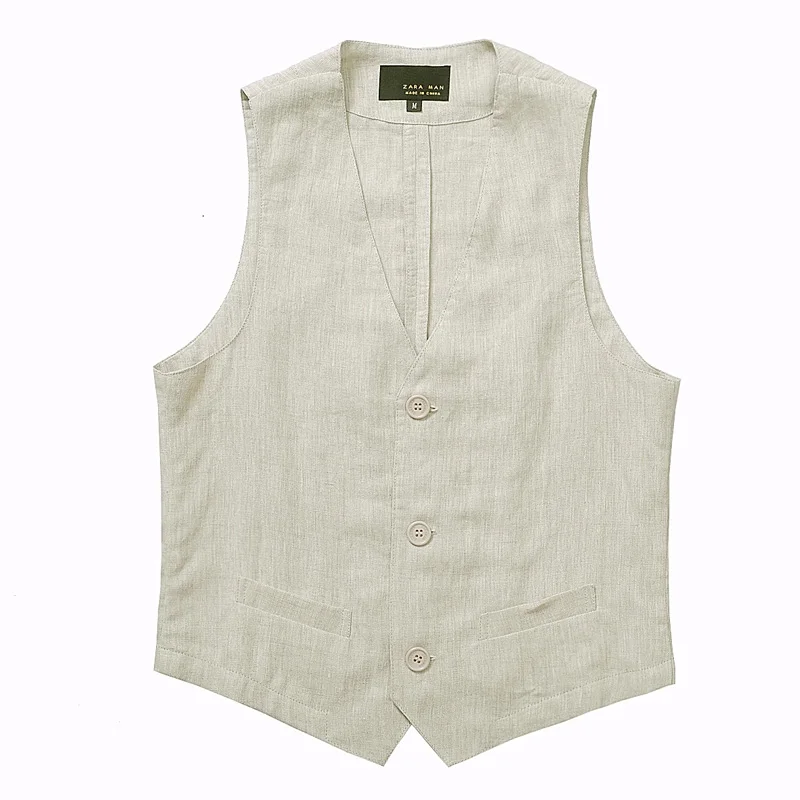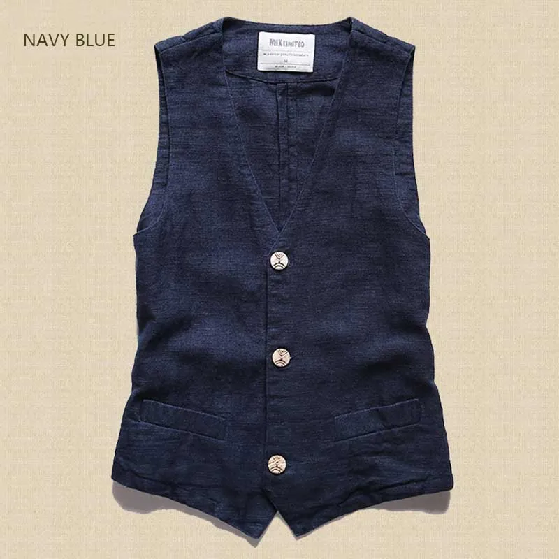 Summer Linen Suit Vest Men Casual Slimming Vest Office Formal Dress Wedding Waistcoat Male Clothing White Blue Black Plus Size