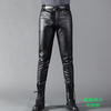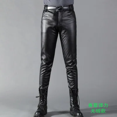 Summer Mens Business Slim Fit Stretchy Black Faux Leather Pants Male Elastic Tight Trousers PU Leather Shiny Pencil Pants A71002